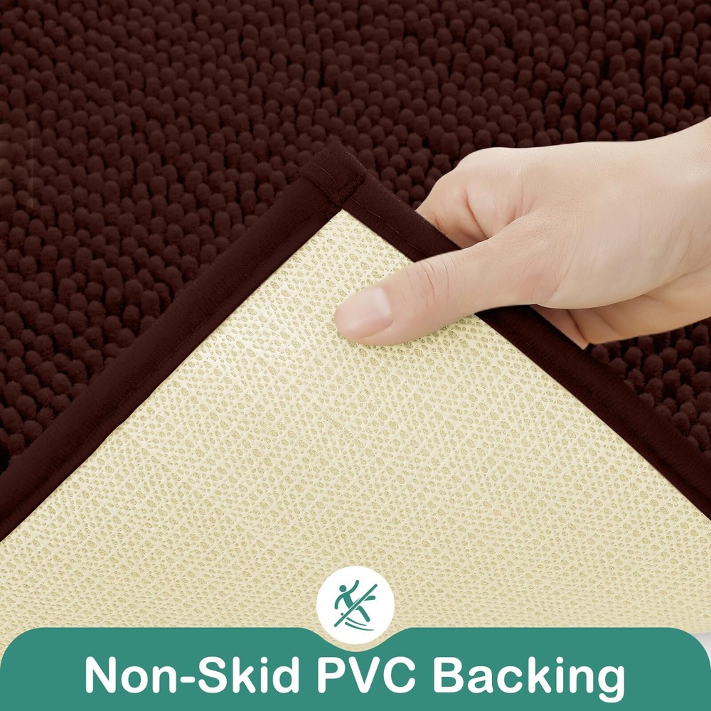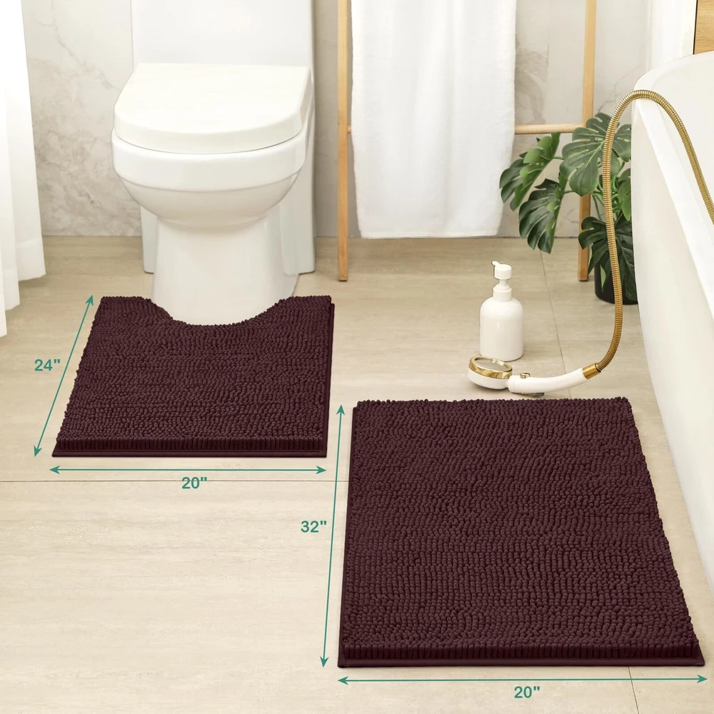 Ultra Soft Non-Slip Chenille Bathroom Rug Set 2-Piece Absorbent Toilet Mat