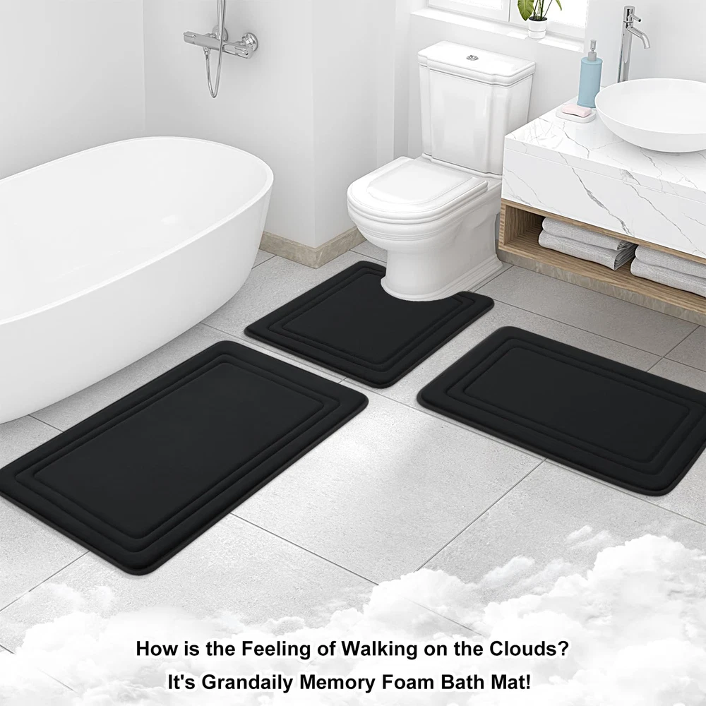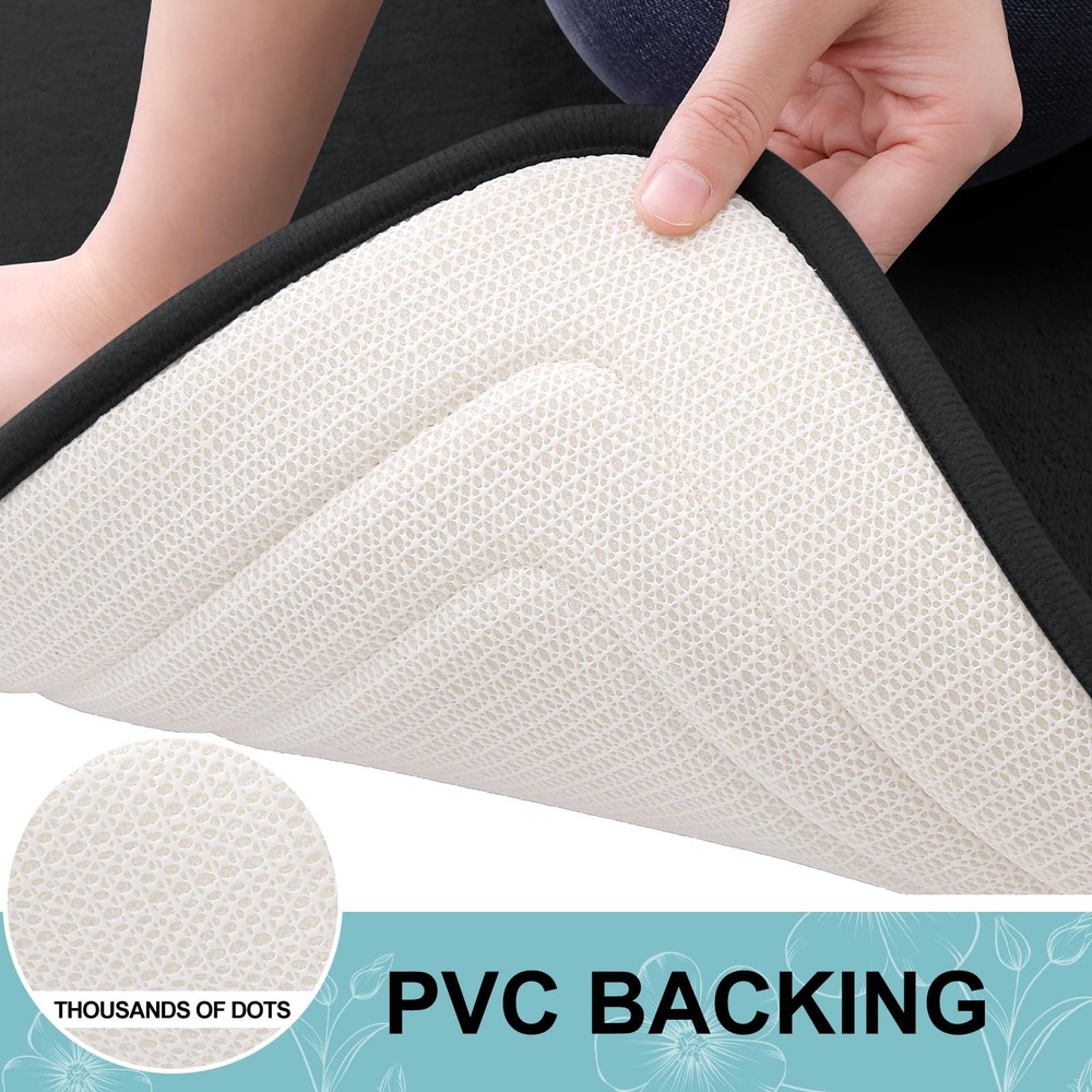 [CLOUD-LIKE COMFORT] Imagine stepping onto a memory foam bath mat and feeling the heavenly softness of microfiber flannel velvet cradling your feet. The thick memory foam provides gentle support, making it feel like you're standing on clouds. [QUICK-DRY LUXURY] 's soft velvet microfiber bath rugs rapidly absorb water, offering a dry and slip-resistant surface when you step out of the bath, shower, or sink area. Experience the convenience of a fast-drying and dependable bathroom rug. [STABLE FOOTING] Our bathroom mat is equipped with a robust and enduring PVC backing, preventing shifting and skidding. Unlike mats with rubber backing that may wear off after washing, our bath mat ensures lasting durability. For a secure footing, keep the floor beneath the rug dry and avoid placing it on wet surfaces. [EASY CARE AND VIBRANT COLORS] Experience the perfect blend of convenience and aesthetics with our rugs. Designed for effortless maintenance, these bath rugs are machine washable, ensuring lasting cleanliness. The vibrant colors stay vivid even after numerous washes, adding a touch of brilliance to your living spaces. [CHIC COMFORT] Enhance your bathroom with 's bath rug – a chic and plush addition to your daily routine. Whether by the tub, shower, or sink, enjoy the soft luxury underfoot and elevate your bathing experience with timeless elegance.