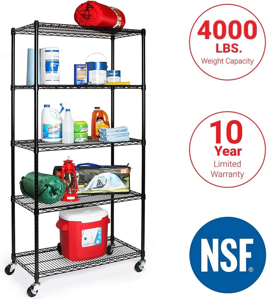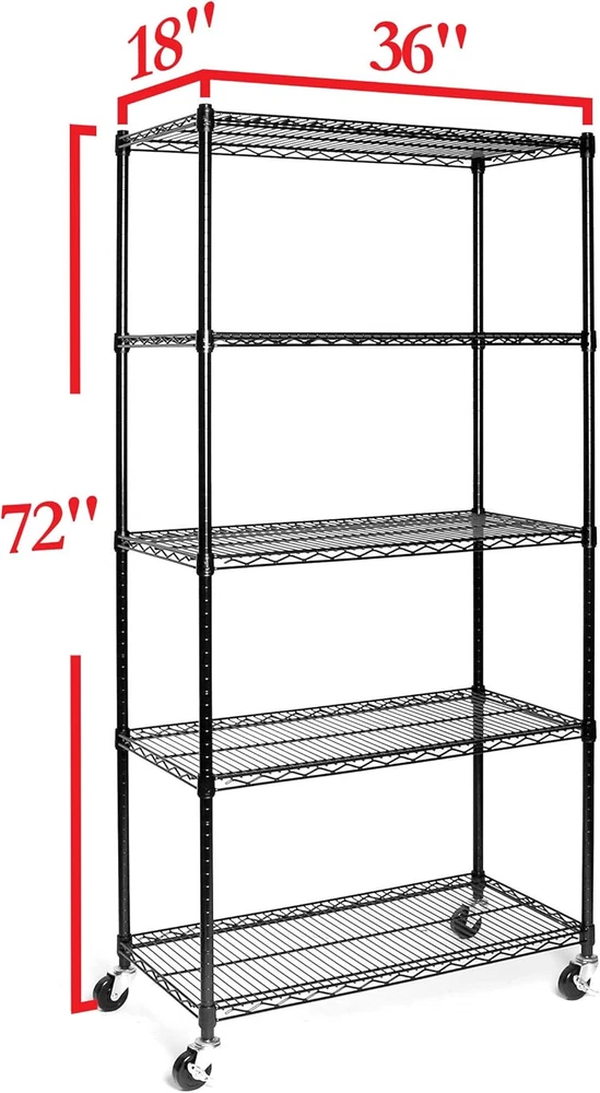 Store New Arrivals Add to Favorite View Feedback Contact Ultradurable Heavy Duty NSF Solid Steel Wire Rack Storage Unit, Organizer for Garage, Warehouse, Office, Restaurant, Classroom, Kitchen, Black, 5-Tier Shelving, 36" W X 18" D Description Item model number WEB691 Style Modern Pattern Organizer Country of Origin Taiwan Batteries Required? No Finish Polished Assembly Required Yes Product Dimensions 18"D x 36"W x 75"H Installation Method Freestanding Material Metal Item Weight 44 Pounds Maximum Weight Capacity 600 Pounds Included Components 4 pairs of poles (1" diameter), 4 wheels (3" diameter), 20 slip sleeves, 5 shelves (36" x 18"), 4 leveling feet Item Package Quantity 1 Number Of Pieces 4 Item Weight 44 pounds Number of Shelves 5 Special Features Adjustable Part Number WEB606 Shelf Type Tiered Shelf Mounting Type Wall Mount Color Black Furniture Finish Black Global Trade Identification Number 00017641006919 Shape Rectangular Product Care Instructions Wipe with Dry Cloth Size 5-Tier Shelving, 36" W x 18" D DIMENSIONS - Overall dimensions are 36"W x 18"D x 75"H (72”H on leveling feet). 5 ADJUSTABLE SHELVES - 36" x 18" commercial-grade heavy-duty shelves are height adjustable at 1” increments. WEIGHT CAPACITY – 800 lbs. per shelf (4,000 lbs. total on leveling feet and 500 lbs. total on wheels). NSF-CERTIFIED STORAGE - Certified by the NSF to NSF/ANSI Standard 2 - Food Equipment for use in dry environments. INDUSTRIAL GRADE STEEL – Solid steel construction for both home, business, and commercial use. CONVENIENTLY MOBILE – Durable 3" wheels (2-locking) with metal hardware allow for easy mobility; bonus leveling feet included. Organize any space with Seville Classics UltraDurable® 5-Tier Commercial-Grade NSF-Certified Steel Wire Shelving System. This heavy-duty shelving is constructed from industrial-strength steel and measures 36” wide by 18” deep by and 75” high fully assembled on wheels (72” high on leveling feet). The 5 shelves and 4 poles are coated in a durable epoxy finish for protection against corrosion in dry environments. Shelves are adjustable in 1” increments. Includes four 3” heavy-duty rubber wheels and four adjustable leveling feet. NSF Certified - NSF/ANSI Standard 2 - Food Equipment for commercial and restaurant use. This shelving system can store up to 800 lbs. per shelf on leveling feet (4,000 lbs. total). On wheels this shelving system can store up to 500 lbs. total. No tools are required for assembly. ABOUT US We offer the best prices around on high quality products. Our E-store includes media such as books, movies, music and games while offering electronics, toys, sporting apparel, clothing, tools, general home, garden items and more. SHIPPING We are always working hard to ensure your package arrives as soon as possible. Please understand that some factors like weather, high postal traffic, and the performance of shipping companies are outside of our control. We offer free shipping to the lower 48 states and ship within 2 business days of payment, usually sooner. We do not accept P.O. Boxes. Please provide a physical address. For shipping outside of the continental USA, we only use eBay's Global Shipping Program.The item is shipped to KY and then sent to the rest of the world. International customers are responsible for all duties and taxes. Continue to check out in order to calculate costs for shipping the item to your country. Messages regarding eBay's Global Shipping Program MUST be directed at eBay EXCLUSIVELY. RETURNS We offer a 30-Day Return Policy on items which you are not completely satisfied with. You have the option for a full-refund or an exchange of the item. No returns are available on items shipped outside of the USA. PAYMENT We accept PayPal. CONTACT US This page content is yet to come Please ad us to your favorite seller and visit again later Thank You CUSTOMER SATISFACTION We try our very best to make sure every customer is completely satisfied. If there's a problem, message us! We're happy to help. WE ACCEPT Copyright © 2021 AutoDS. | All Rights Reserved