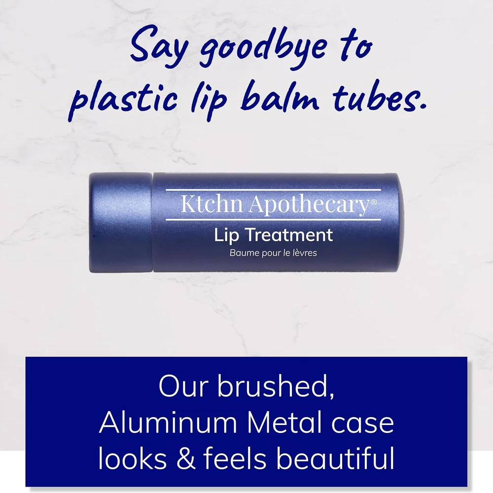 ULTRA-HYDRATING NATURAL LIP BALM & LIP CONDITIONER IN ONE: Our handcrafted Lip Treatment is an Ultra-Hydrating Lip Balm & Lip Conditioner in One. Freshly made with natural & food-quality ingredients, this nourishing, moisturizing formula visibly hydrates & soften lips. MOISTURIZE & NOURISH DRY LIPS: Our handcrafted formula is rich in omega fatty acids, known for their powerful ability to intensely moisturize & deeply nourish chapped, dry lips. GOES ON SILKY SMOOTH — NEVER WAXY OR STICKY: Freshly made with moisture-replenishing African Shea Butter, our lip balm has a smooth, silky texture with a clear satin finish. Never waxy or sticky. SOFTEN & PROTECT LIPS: Formulated with antioxidant-rich virgin Avocado Oil & lauric acid-rich Coconut Oil, our Lip Treatment supremely protects lips from dryness, softening & smoothing rough lips with all-day & night hydration. HANDCRAFTED WITH NOURISHING, 100% NATURAL INGREDIENTS: Our exclusive formula is freshly made with Nourishing, Natural Ingredients. Housed in our signature, recyclable Brushed Aluminum case with Twist-to-Lock lid to seal in freshness & protect when not in use. Perfect for Women + Men. Product Description Handcrafted & Freshly Made Ktchn Apothecary 100% Natural Hydrating Lip Treatment Our handcrafted Lip Treatment is an ultra-hydrating lip balm & lip conditioner in one. Freshly made with natural, nourishing ingredients, this moisturizing formula rejuvenates, smoothes, & softens for visibly healthier, hydrated lips. All Skin Types. Men & Women. HYDRATE & SOFTEN ULTRA-HYDRATING LIP BALM & CONDITIONER-IN-ONE Handcrafted with nourishing ingredients, this moisturizing formula dramatically hydrates & softens. NOURISHING & 100% NATURAL NOURISH & MOISTURIZE DRY LIPS. NATURALLY. This hydrating 100% Natural formula intensely moisturizes & deeply nourishes chapped or dry lips ALL DAY & NIGHT HYDRATION SOFTEN & PROTECT LIPS Supremely protect lips from dryness, softening & protecting with all-day & night hydration NEVER WAXY OR STICKY SILKY SMOOTH TEXTURE Freshly made in small batches for a silky, smooth texture. Never waxy or sticky BYE BYE PLASTIC TUBES PREMIUM BRUSHED ALUMINUM METAL CASE Say goodbye to Plastic Lip Balm Tubes. Our brushed Aluminum Metal Case looks & feels beautiful 1 2-IN-1 LIP TREATMENT 2 NOURISH & MOISTURIZE 3 SOFTEN & PROTECT LIPS 4 SILKY SMOOTH TEXTURE 5 PREMIUM ALUMINUM CASE AVOCADO OIL This nourishing oil is rich with of vital antioxidants known to dramatically smooth & soften lips . AFRICAN SHEA BUTTER Rich in essential fatty acids known to intensely moisturize & nourish parched lips . HONEYCOMB BEESWAX Rich with pure esters, Honeycomb Beeswax is known to protect lip's natural moisture barrier. VIRGIN COCONUT OIL This nourishing ingredient is known to dramatically soften & smooth, rejuvenating dry lips . HIGH-PERFORMING, NOURISHING & ANTIOXIDANT-RICH INGREDIENTS 1 AVOCADO OIL 2 AFRICAN SHEA BUTTER 3 HONEYCOMB BEESWAX 4 VIRGIN COCONUT OIL WHAT CUSTOMERS ARE SAYING Ktchn Apothecary. Healthier Skincare for Healthier-Looking Skin. Handcrafted in Small Batches with the Batch Number right on the Bottle for Freshness You Can See Clean & Natural Ingredients Nourishing, High-Performing Ingredients Dramatically Improve How Skin Looks & Feels Made in the USA for Superior Quality You Can Trust Cruelty-Free No Animal Testing Ever. Naturally Facial Care: Handcrafted & Freshly Made in Small Batches Add to Cart Add to Cart Add to Cart Customer Reviews 4.5 out of 5 stars 92 4.6 out of 5 stars 2,012 4.3 out of 5 stars 27 4.6 out of 5 stars 65 4.6 out of 5 stars 238 5.0 out of 5 stars 2 Price $129.99 $ 129 . 99 $19.99 $ 19 . 99 — — $42.99 $ 42 . 99 — Freshly Made Treatment Save $30+ by ordering as a Set Facial Cleanser Face Oil Hyaluronic Acid Serum Facial Moisturizer Eye Serum All Skin Types ✔ ✔ ✔ ✔ ✔ ✔ For Women & Men ✔ ✔ ✔ ✔ ✔ ✔ Nourishing, Natural Formula ✔ ✔ ✔ ✔ ✔ ✔ Freshly Made in Small Batches ✔ ✔ ✔ ✔ ✔ ✔ Size 4 Full Size Bottles 4.0 fl oz 1.0 fl oz 2.0 fl oz 2.0 fl oz 0.5 fl oz Body & Hair Care: Handcrafted & Freshly Made in Small Batches Add to Cart Add to Cart Customer Reviews 4.4 out of 5 stars 255 4.4 out of 5 stars 51 4.2 out of 5 stars 20 4.2 out of 5 stars 82 Price $19.99 $ 19 . 99 — $24.99 $ 24 . 99 — Freshly Made Treatment Lip Treatment NEW — Body Cleanser NEW — Shampoo Body Lotion All Skin & Hair Types ✔ ✔ ✔ ✔ For Women & Men ✔ ✔ ✔ ✔ Nourishing, Natural Formula ✔ ✔ ✔ ✔ Freshly Made in Small Batches ✔ ✔ ✔ ✔ Size 0.15 oz 16.0 fl oz 12.0 fl oz 16.0 fl oz