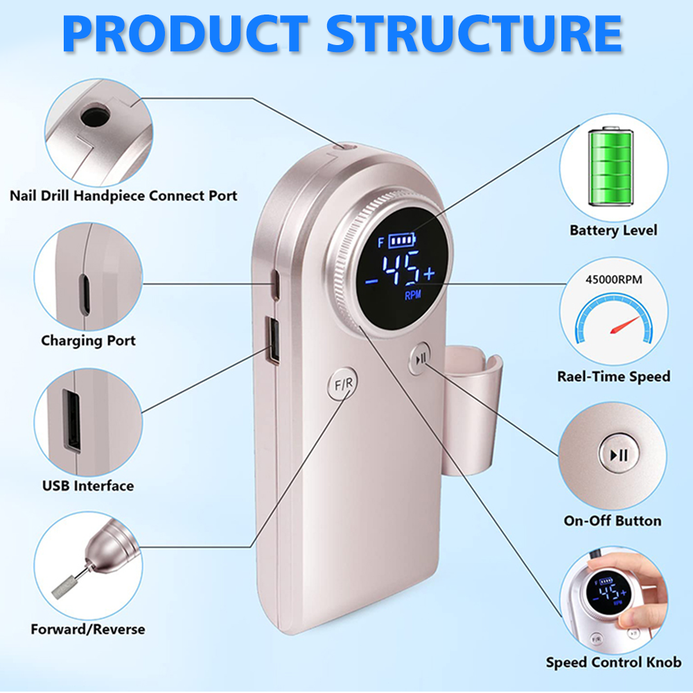 Ultra-Powerful 45000RPM Cordless Nail Drill for Manicure Pedicure B39