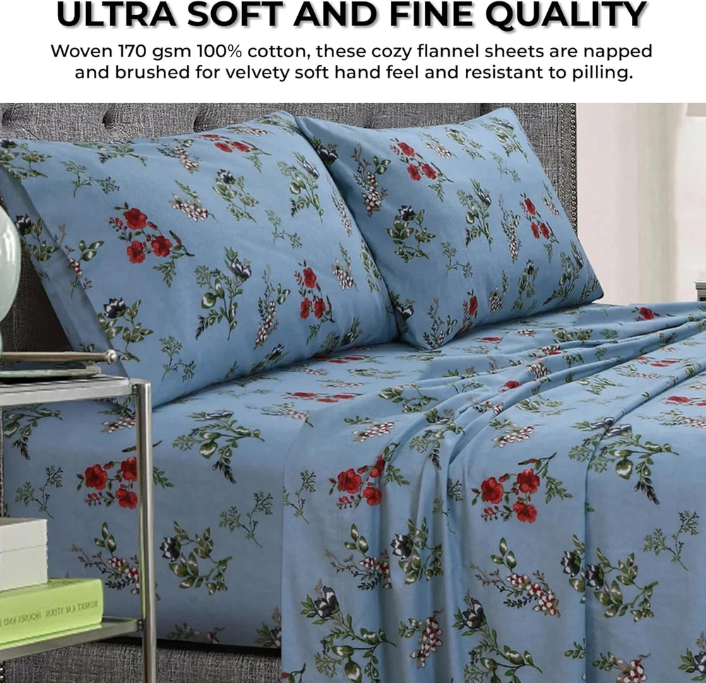 Store New Arrivals Add to Favorite View Feedback Contact Ultra-Soft Flannel Sheet Set, 170-GSM Cotton, Deep Pocket, Cozy Winter Bedding - Queen, Floral Blue Description Item model number 170PKPRFLSS1 Style Traditional Pattern Floral Country of Origin Pakistan Theme Floral Department womens Cartoon Character Floral Number of Pieces 3 Unit Count 1.0 Count Product Dimensions 15 x 6 x 11 inches Batteries required No Pillowcase Quantity 2 Material Cotton Age Range (Description) Adult Seasons All Included Components Pillowcase, Fitted Sheet, Flat Sheet Closure Type Envelope Item dimensions L x W x H 15 x 6 x 11 inches Item Weight 6.55 pounds Sham Quantity 2 Special Feature Deep Pocket Color Blue Thread Count 170 Fabric Type 100% Cotton Flannel Product Care Instructions Machine Wash Size Queen 100% Cotton Flannel Ultra-Soft 170 GSM Cotton Flannel: Experience unparalleled comfort with this ultra-soft 170 GSM flannel sheet set. Made from 100% cotton, these sheets are brushed on both sides for added softness, ensuring a warm and cozy sleep during colder months. Extra Deep Pockets for a Secure Fit: Designed with fully elasticized edges, the fitted sheet accommodates mattresses up to 21 inches deep, ensuring a snug fit on thicker mattresses and pillow-tops for a smooth, comfortable surface. Complete Queen Bedding Set: Includes an oversized flat sheet, a fully elasticized deep pocket fitted sheet, and two pillowcases with envelope closures for a polished look. The oversized flat sheet offers extra coverage for added comfort. Durable and Easy Care: These flannel sheets are machine washable and designed for long-lasting use. They retain their softness and vibrant colors even after multiple washes, making them a practical choice for everyday use and winter bedding. Available in Multiple Sizes and Designs: Choose from a range of sizes and patterns to fit your bed and personal style. Whether you prefer bold colors or subtle designs, Tribeca Living offers something for everyone. Woven 170 gsm 100% cotton, these cozy printed flannel sheets feature eye catching printed patterns in a range of floral patterns. This sheet set is designed to accomodate most extra deep mattresses with its fully-elasticized extra deep fitted sheet. ABOUT US We offer the best prices around on high quality products. Our E-store includes media such as books, movies, music and games while offering electronics, toys, sporting apparel, clothing, tools, general home, garden items and more. SHIPPING We are always working hard to ensure your package arrives as soon as possible. Please understand that some factors like weather, high postal traffic, and the performance of shipping companies are outside of our control. We offer free shipping to the lower 48 states and ship within 2 business days of payment, usually sooner. We do not accept P.O. Boxes. Please provide a physical address. For shipping outside of the continental USA, we only use eBay's Global Shipping Program.The item is shipped to KY and then sent to the rest of the world. International customers are responsible for all duties and taxes. Continue to check out in order to calculate costs for shipping the item to your country. Messages regarding eBay's Global Shipping Program MUST be directed at eBay EXCLUSIVELY. RETURNS We offer a 30-Day Return Policy on items which you are not completely satisfied with. You have the option for a full-refund or an exchange of the item. No returns are available on items shipped outside of the USA. PAYMENT We accept PayPal. CONTACT US This page content is yet to come Please ad us to your favorite seller and visit again later Thank You CUSTOMER SATISFACTION We try our very best to make sure every customer is completely satisfied. If there's a problem, message us! We're happy to help. WE ACCEPT Copyright © 2021 AutoDS. | All Rights Reserved