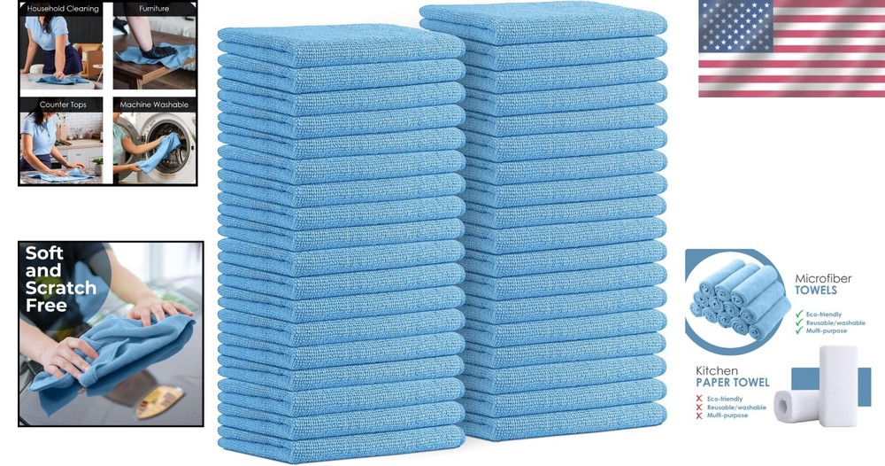 Ultra Soft Lint-Free Cleaning Cloths - 36 Reusable Microfiber Towels, 16x16 ‹ › ‹ › ‹ › ‹ › ‹ › ‹ › ‹ › ‹ › ‹ › ‹ › ‹ › Ultra Soft Lint-Free Cleaning Cloths - 36 Reusable Microfiber Towels - Size: 16x16 Inches Value Pack: Includes 36 large microfiber cleaning cloths in a bulk pack, ensuring you have an endless supply of cleaning rags at your disposal. Soft and Absorbent: Crafted from ultra-soft and highly absorbent microfiber, these cloths are perfect for cleaning windows, kitchenware, cars, and other delicate surfaces. Versatile: Effortlessly removes grease and particles from microwave ovens, plates, pots, or pans. Ideal for dusting - removes fingerprints from silverware and glasses, ensuring your kitchen shines with cleanliness. Long Lasting: Features high-quality stitching with reinforced edges for exceptional durability. Designed to withstand hundreds of washings, these towels are lightweight, super absorbent, and dry quickly, making them perfect for everyday use. Easy Care: Machine washable for easy maintenance; simply toss them into the washer and dryer. Replace traditional paper towels with these reusable cloths, saving time, energy, and resources while caring for the environment. Why choose our Ultra Soft Lint-Free Cleaning Cloths? Experience the luxury of cleanliness with our Ultra Soft Lint-Free Cleaning Cloths. These versatile and durable microfiber towels offer unparalleled absorption and softness for all your cleaning needs. Whether you're tidying up your kitchen, detailing your car, or dusting your home, our cloths provide efficiency and impeccable care for various surfaces. Make the switch to a more sustainable cleaning option today—order your pack of Ultra Soft Lint-Free Cleaning Cloths and elevate your cleaning routine! Shipping Free & Fast Shipping - We offer free shipping to most of the USA with a normal delivery time of 3-10 businessdays. However, due to various situations, additional delivery time (up to 3 weeks) may be required for some items. Alternative Carriers - We may use alternative carriers (e.g. USPS, FedEx, UPS, etc.) to ensure your package arrives safely and on time. Due to the use of multiple carriers, we are unable to provide a tracking number automatically. Handling Time - Orders are processed and shipped within 1-5 business days of receiving cleared payment. Shipping Restrictions - Shipping to Alaska, Hawaii, Puerto Rico, Guam, and other US territories may incur shipping charges or delivery restrictions. Please contact us before ordering, or your order can be refunded/cancelled. State Restrictions - There may be restrictions based on your state of purchase. For example, certain items may not be shipped to California due to state regulations. Contact for Tracking Updates - If you require tracking updates or have any concerns about the delivery of your order, please feel free to contact us, and we will be happy to assist you. Return Please see our ebay return policy. We do not accept return on most products. This is to avoid customers mis-using ebay returns. All sales are final. Please be sure to check the return policy listed at the top of the listing. In rare cases, we may accept returns, if the buyer pays both ways shipping and 20% restocking fee. If you are un-sure of return policy of a particular item, please ask before buying. Payment We accept all major credit cards, PayPal, and Apple Pay for your convenience. Your payment information is secure and encrypted to ensure a safe and seamless transaction. Please complete your payment within 3 days of purchase to avoid any delays in shipping. Feedback Your feedback is extremely important to us. We strive to provide the best products and customer service possible. If you are satisfied with your purchase, please take a moment to leave us a positive review. If you have any concerns or issues with your order, please contact us before leaving negative feedback. We are committed to resolving any problems and ensuring your satisfaction. Contact Us If you have any questions or concerns, please feel free to reach out to our customer support team. You can contact us through the eBay messaging system. We are available Monday to Friday, 9:00 am to 5:00 pm EST, and we will do our best to respond to your inquiry within 24 hours. Buy it now and enjoy a pleasant shopping experience! UPC: Not Set Item Height: Not Set Item Length: Not Set Item Width: Not Set Unit Quantity: 36 Material: Microfiber Features: Lightweight,Reusable,Durable Theme: No Theme Brand: Unbranded Type: Cloth Color: Blue For: Kitchen Size: Large Capacity: More Than 100 Loads MPN: Not Set Number in Pack: 36 Country/Region of Manufacture: Not Set Item Weight: 3.78 lbs Model: Not Set Unit Type: lb