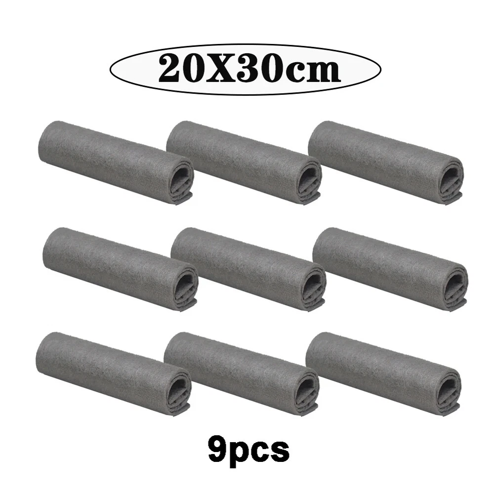 Name: magic cleaning cloth Color: gray Size: 20*30cm, 30*30cm, 40*30cm Material: microfiber Function: water absorption Package Included: 6/9/12pcs 100% Thickened Magic Cleaning Cloth 【Thickened Magic Cleaning Cloth】Which leaves no streaks when cleaning windows, mirrors or other glass products, grabs dust. 【Streak Free Microfiber Cleaning Cloth】The cleaning cloths are tightly woven to prevent lint. Use the Streak-Free Miracle Cleaning Cloth to dry on your mirrors and windows to soak up water. 【Multipurpose Microfiber Cleaning Cloth】The microfiber cleaning cloth is ideal for cleaning glass, mirrors, cars, floors, furniture, appliances, etc. Microfiber and water are a perfect match for a variety of cleaning tasks around your home.