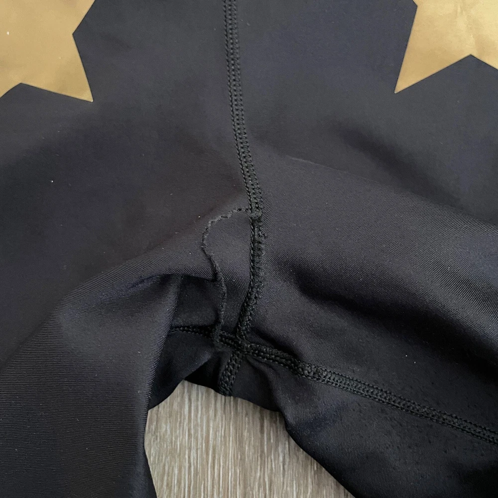 Ultracor Lux Essentials Star Knockout Ultra High Legging in Nero/Gunmetal Black Gold Excellent used condition No visible stains or worn spots There's a loose thread along the crotch area - see as pictured. Size: XS Color: Nero/Gunmetal *Color may differ in photos due to lighting. Bonded star detail Second-skin like fit & fabric Built-in shapewear High stretch compression performance fabric Nylon/Lycra Machine wash cold. Measurements (laid flat across): Rise: 9" Inseam: 25" Waist (across): 11.25" Total Length: 34"