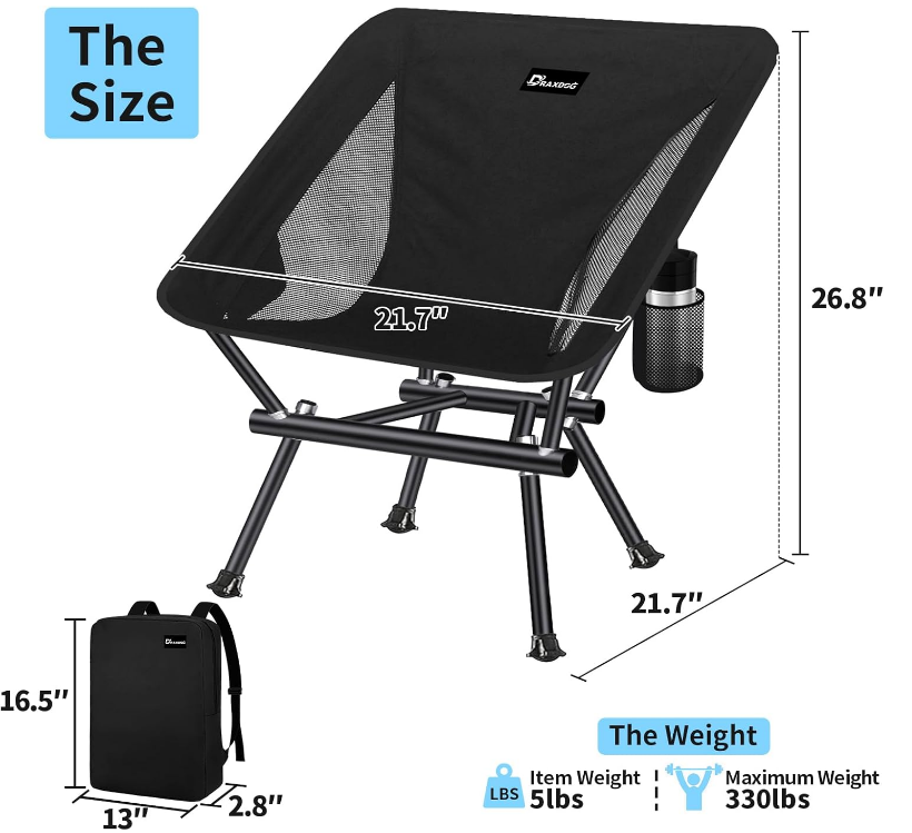 Ultralight Portable Camping Chair with Backpack, Heavy Duty 330 lbs Capacity