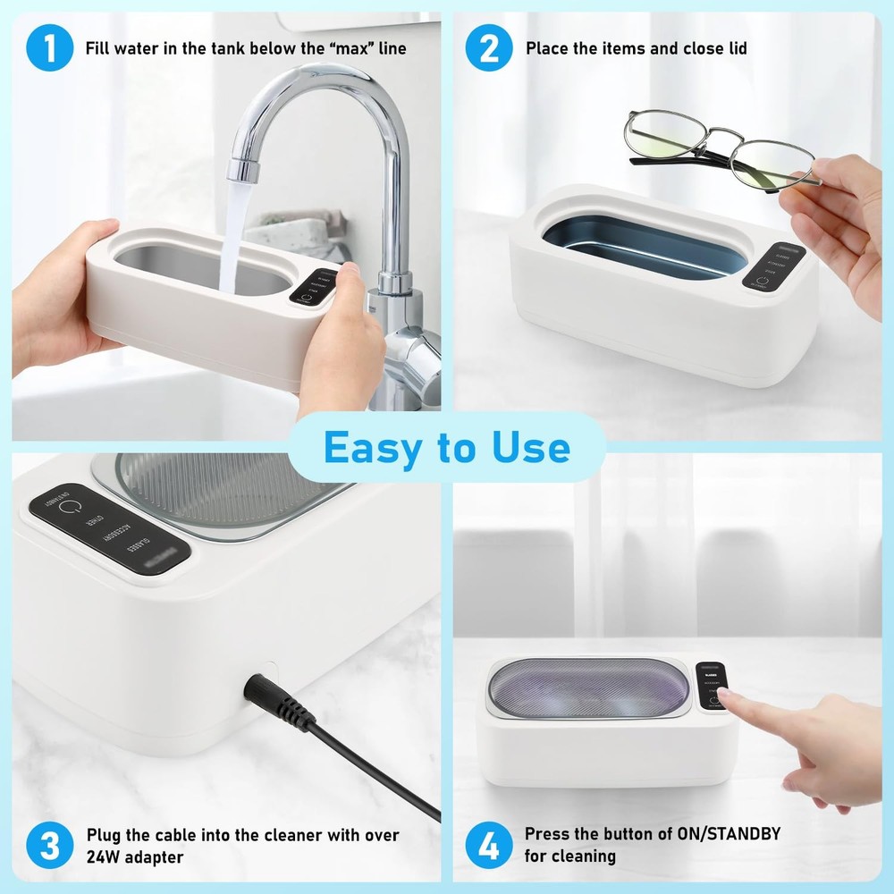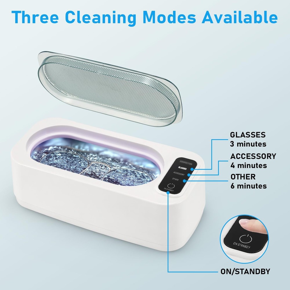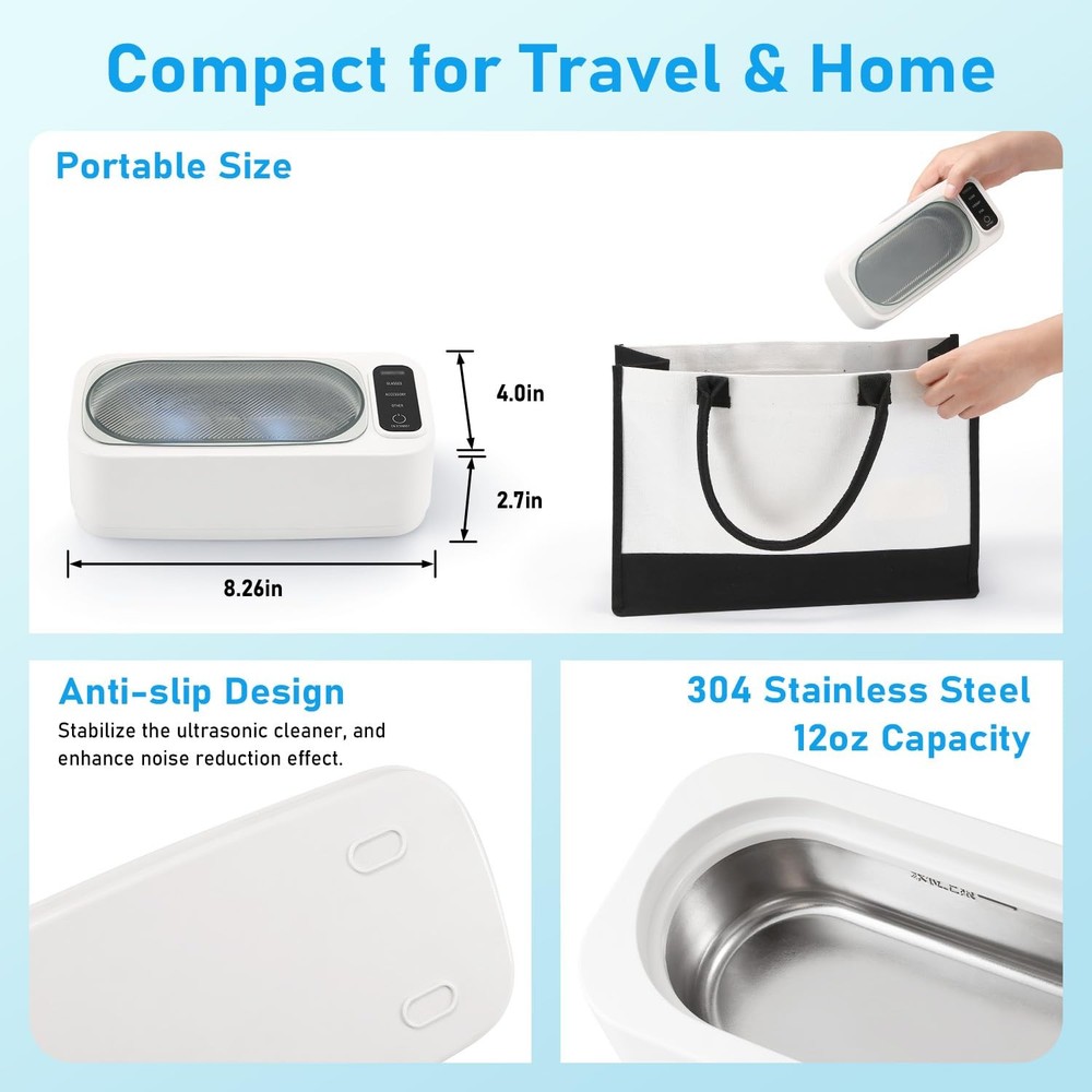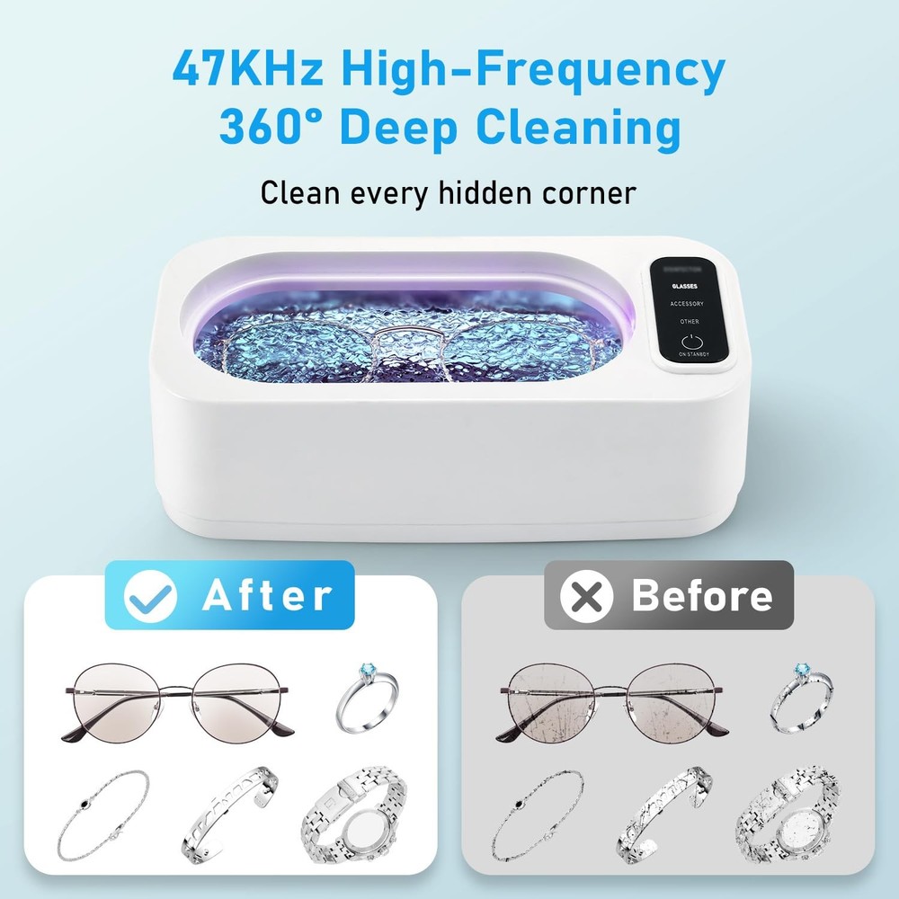 Experience superior cleaning power with this professional ultrasonic cleaner, featuring advanced 47KHz high-frequency technology and 24W of robust cleaning performance. The generous 400ml capacity tank, crafted from premium 304 stainless steel, provides ample space for various items while ensuring durability and longevity. With three versatile cleaning modes, this device adapts to your specific needs, whether you're cleaning delicate jewelry, eyeglasses, dentures, or small mechanical parts. The high-frequency ultrasonic waves create microscopic bubbles that effectively remove dirt, grime, and buildup from hard-to-reach areas. The sleek design combines functionality with convenience, making it perfect for both professional and home use. The stainless steel interior maintains cleanliness and resists wear over time, while the user-friendly interface ensures simple operation. This ultrasonic cleaner delivers consistent, thorough cleaning results for a wide range of applications. POWERFUL CLEANING: 47KHz ultrasonic frequency combined with 24W power delivers thorough cleaning for small items in the 400ml capacity tank VERSATILE MODES: Features 3 different cleaning modes to accommodate various items from delicate jewelry to sturdy metal parts PREMIUM CONSTRUCTION: 304 stainless steel interior tank ensures durability and resistance to corrosion over extended use WIDE COMPATIBILITY: Perfect for cleaning jewelry, eyeglasses, dentures, watch parts, and other small items that require detailed cleaning TANK CAPACITY: 400ml stainless steel tank provides ample space for cleaning multiple small items simultaneously