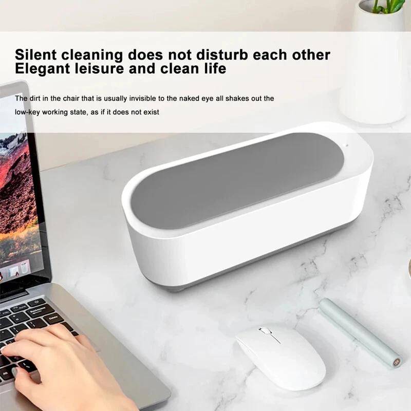 Ultrasonic Cleaning Machine 45KHz High Frequency Multifunctional Vibration Cleaner USB Charge Jewelry Glass Ring Cleaner Specification: Material: PP Rated voltage: 12V rated Power: 5W color: White Weight: 0.193 Size: 190x72x6 8mm/7.2x2.8x2.6" Power supply: 2 AAA dry batteries (not included) Suitable for cleaning glasses, jewelry, makeup brushes, toys, razors, toothbrushes, nail clippers, combs, etc. Features: 1. Multifunctional jewellery washer: can be used to clean jewellery, rings, glasses, dentures, watches, coins, etc. 2. Ultrasonic cleaning: ‘cavitation effect’, quickly cleans stains. 3. One-key start: 360° purification, deep cleans dirt from the crevice. 4. How to use: Add a suitable amount of water, one key start cleaning, efficient cleaning, easy to remove stains 5. Advanced cleaning method: Stop using traditional liquid cleaners and brushes, which can damage your valuables and hands. Ultrasonic cleaners are the perfect replacement for traditional liquid cleaners. It makes cleaning messes easier and safer, you can clean your things anytime, anywhere, and the ultrasonic won't scratch or damage your valuables. Package includes: 1.USB models: 1 x Ultrasonic Makeup Tools Jewellery Contact Lens Braces Watch Washing Machine 1 x USB cable 2.Battery models: 1 x Ultrasonic Makeup Tools Jewellery Contact Lens Braces Watch Washer (battery not included)