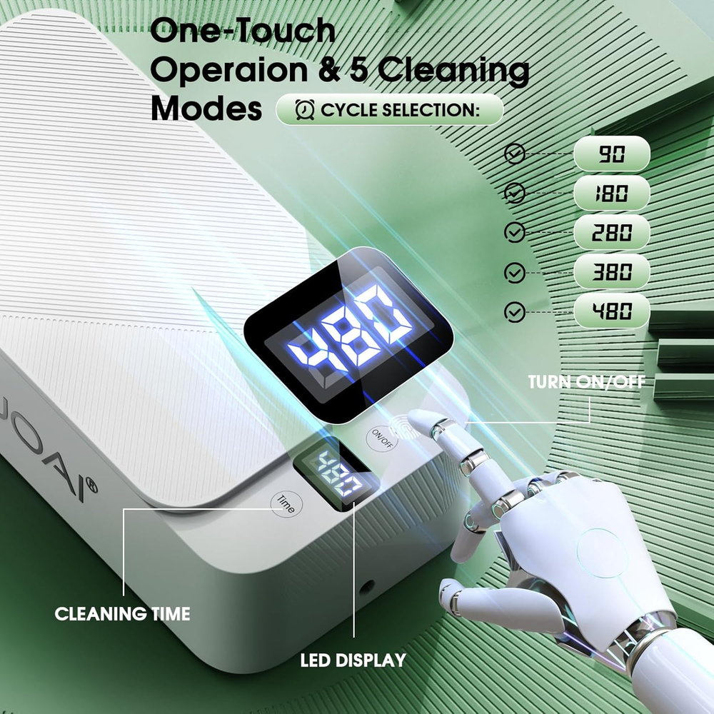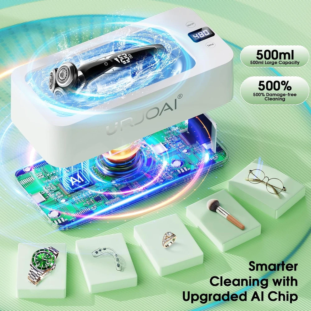 Ultrasonic Jewelry Cleaner 50Khz Jewelry Cleaner Ultrasonic Machine with 5 Timer 360° Deep Cleaning: Our ultrasonic jewelry cleaner utilizes 50kHz high-frequency sound wave technology, creating millions of cleaning bubbles that penetrate every surface to clean jewelry, glasses, dentures, and more. It delivers 360° thorough cleaning, effectively removing stubborn stains while protecting delicate items from damage, leaving them as good as new. 5 Timer Settings with Waterproof Design: This jewelry cleaner ultrasonic machine features a waterproof touch control design, ensuring ease of use in any environment. It offers five timer settings (90 seconds, 180 seconds, 280 seconds, 380 seconds, 480 seconds) to match the level of dirt on your items. Simply touch the button, and the device will start automatically and stop at the preset time to prevent over-cleaning. For enhanced results, use with ultrasonic cleaning solutions and warm water. Low Noise & Portable Design: With a noise level below 45 decibels during operation, this ultrasonic jewelry cleaner machine ensures a quiet and comfortable user experience. Its compact and lightweight design makes it perfect for home use or travel, allowing you to efficiently clean your jewelry, glasses, and other accessories wherever you are. Large Capacity: The 500ml stainless steel tank, made from premium 304 stainless steel, offers ample space to clean multiple items simultaneously, including rings, necklaces, watches, dentures, makeup brushes, and more. The spacious design ensures that every item gets a comprehensive and thorough cleaning, adding convenience to your daily routine. After-Sales : Crafted with high-quality 304 stainless steel, this ultrasonic cleaner is durable and safe to use. We provide a 1-year and have a dedicated customer service team ready to assist with any questions, ensuring a worry-free cleaning experience. Product Description Country of Origin China Package Dimensions 9.92 x 5.43 x 3.5 inches; 1.57 Pounds Complimentary Shipping and Easy Returns Need to return something? Enjoy our 30-day hassle-free return policy! Take advantage of free shipping across all 48 contiguous states! Your order will be dispatched within 1-2 business days once payment is confirmed. Your Opinion Matters! Your happiness is our main goal! We welcome your feedback! If you encounter any problems, reach out to us right away, and we’ll be here to help. Explore the Extraordinary! Our collection showcases fascinating products that are sure to capture your attention. What surprises await you? Delve in and discover unique items that enrich your daily life. Don't miss the amazing things we have in store for you!