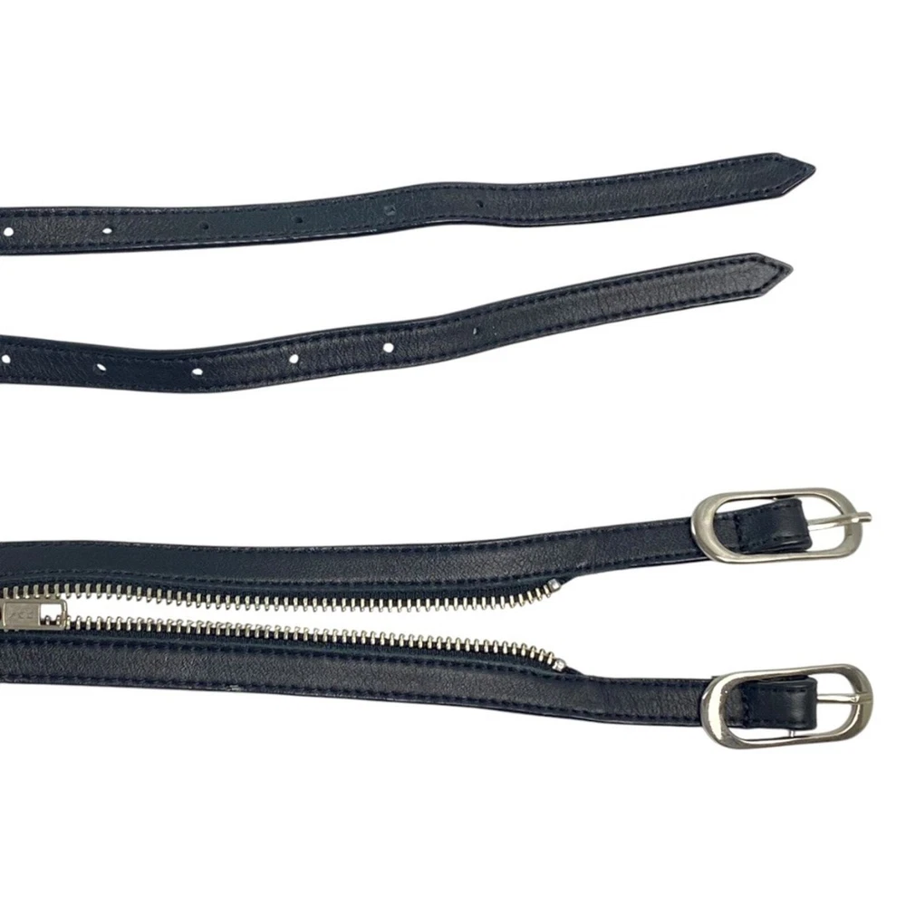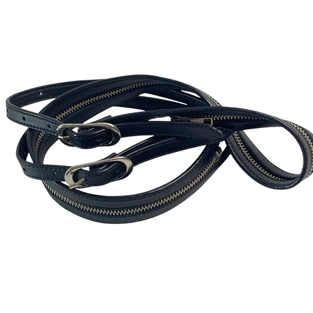 Unbranded Leather Split Zip Belt double buckle Color: Black Unisex Size 36 Condition: Pre-Owned in great used condition Measurements: Min: 33.5” (buckle prone to closest hole) Max: 39” (buckle prone to last hole) Width: 1.30” zipped. Unzipped let you work with two 0.75” straps (including half of the zip) Buckles: two oval buckles 2” x 0.75” in silver tone Zip: YKK silver zip 23.5”