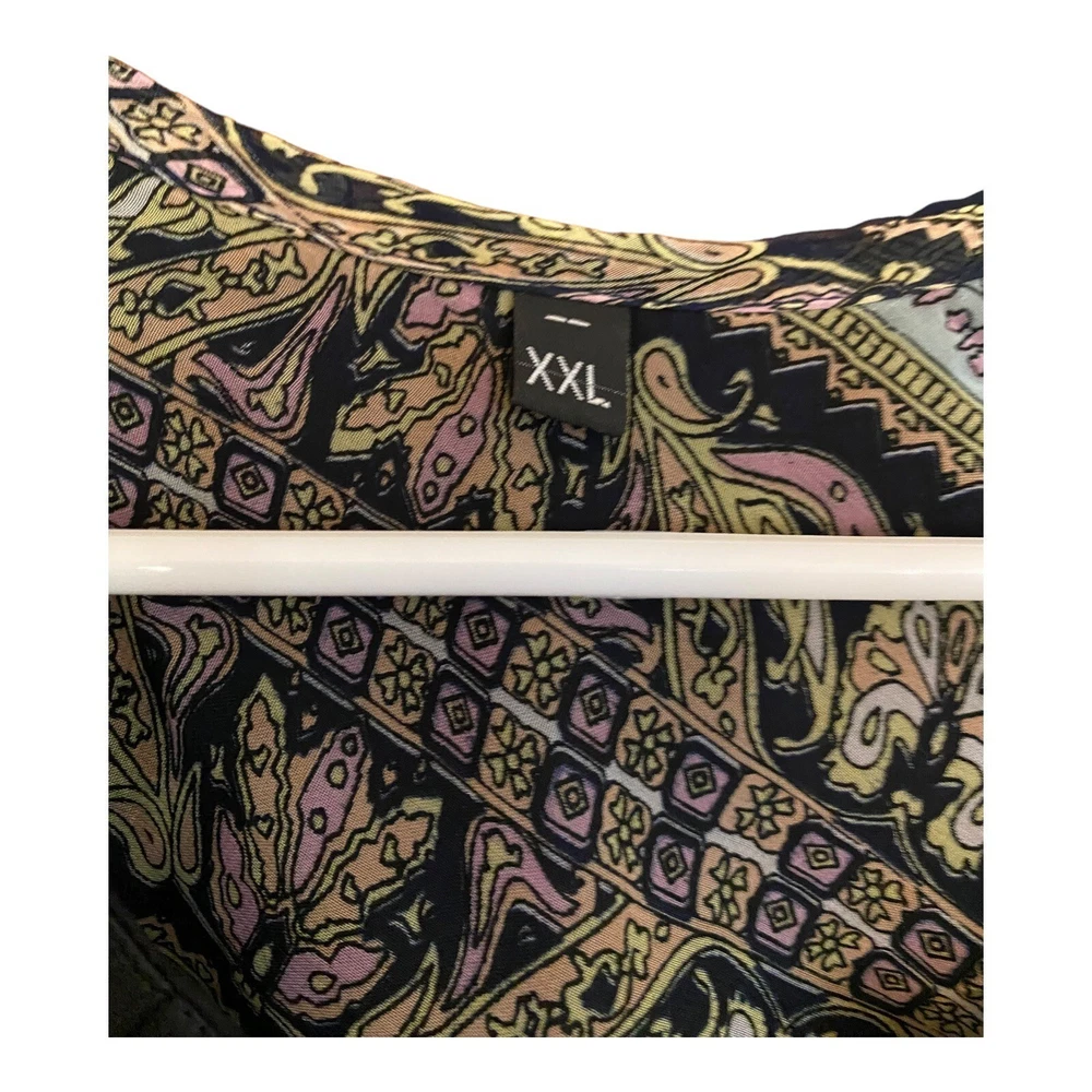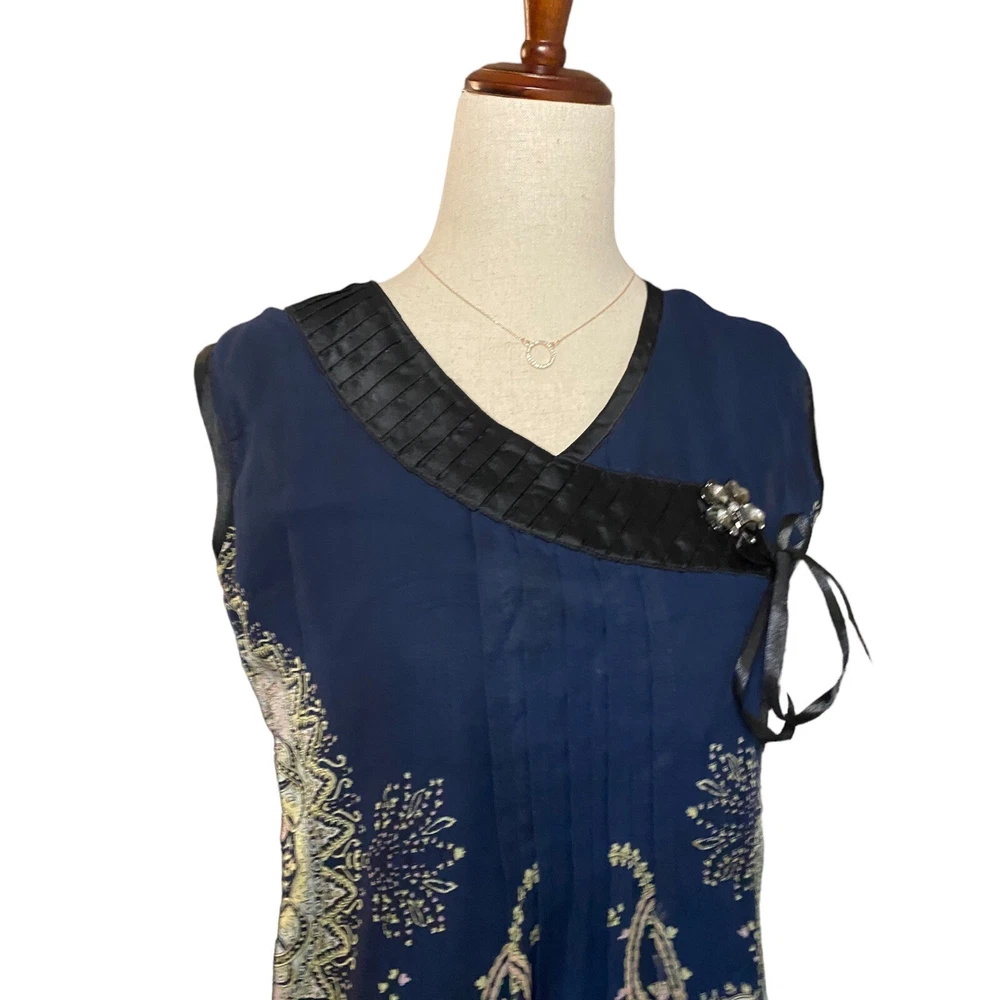 Unbranded Shift Dress Women Size XXL Blue Black Paisley Ribbon Accents Bow Good pre-owned condition, no tag except size tag. ***Minimal wear, is missing one of the four crystals in the broach accent (see all photos - should be easy to find a similar crystal replacement at JoAnn or Michaels to hot glue). Features: - perfect dress for casual summer gatherings, church or family dinners - vibrant shades of blue and black; colorful paisley patterned dress - crystal & bow accents; short sleeves - ribbon detailing at bust and hemline; pleating at mid-section - fully lined; 100% polyester shell and lining - made in China Size: XXL Measurements laying flat: pit-to-pit: 19.5" length: 32.5 waist: 18" Ships FAST & AFFORDABLE next business day. Offers welcome.