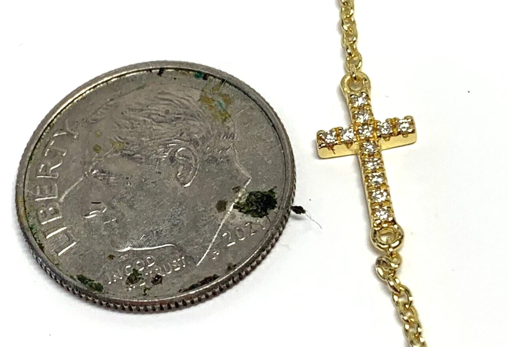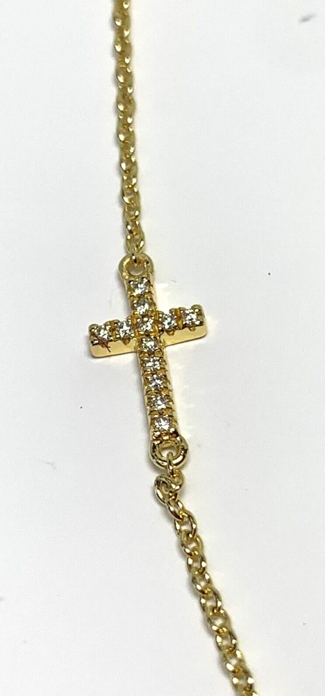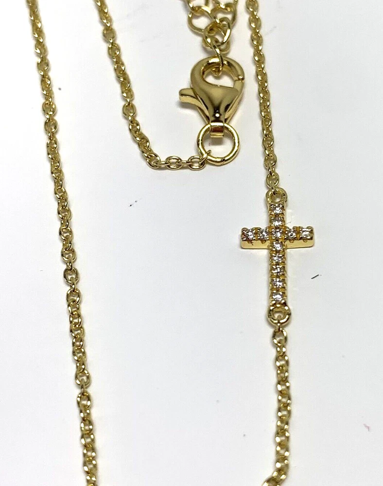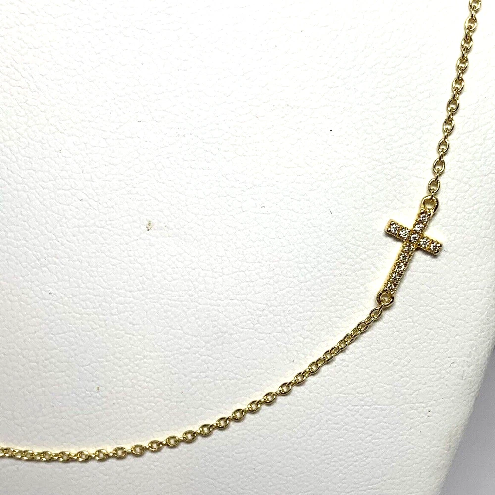 UncommonJames Sterling Silver Diamond Side Cross Vermeil Necklace New Dainty This small, studded cross pendant affixed to a simple gold chain is the finishing touch to any look. Crafted with 18k gold over sterling silver and real, slightly included round-cut diamonds, this is a dainty necklace you’ll want in your collection forever. Length 14" - 16.5" Closure: Lobster Clasp