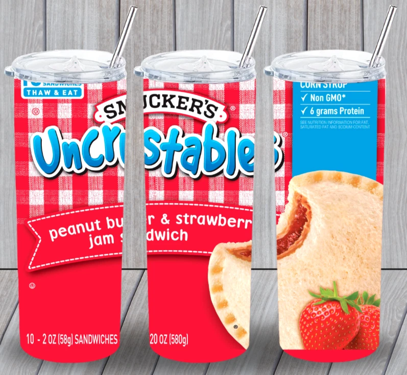 Uncrustables Strawberry Multicolor 20oz Insulated Tumbler Lid Plastic Straw New