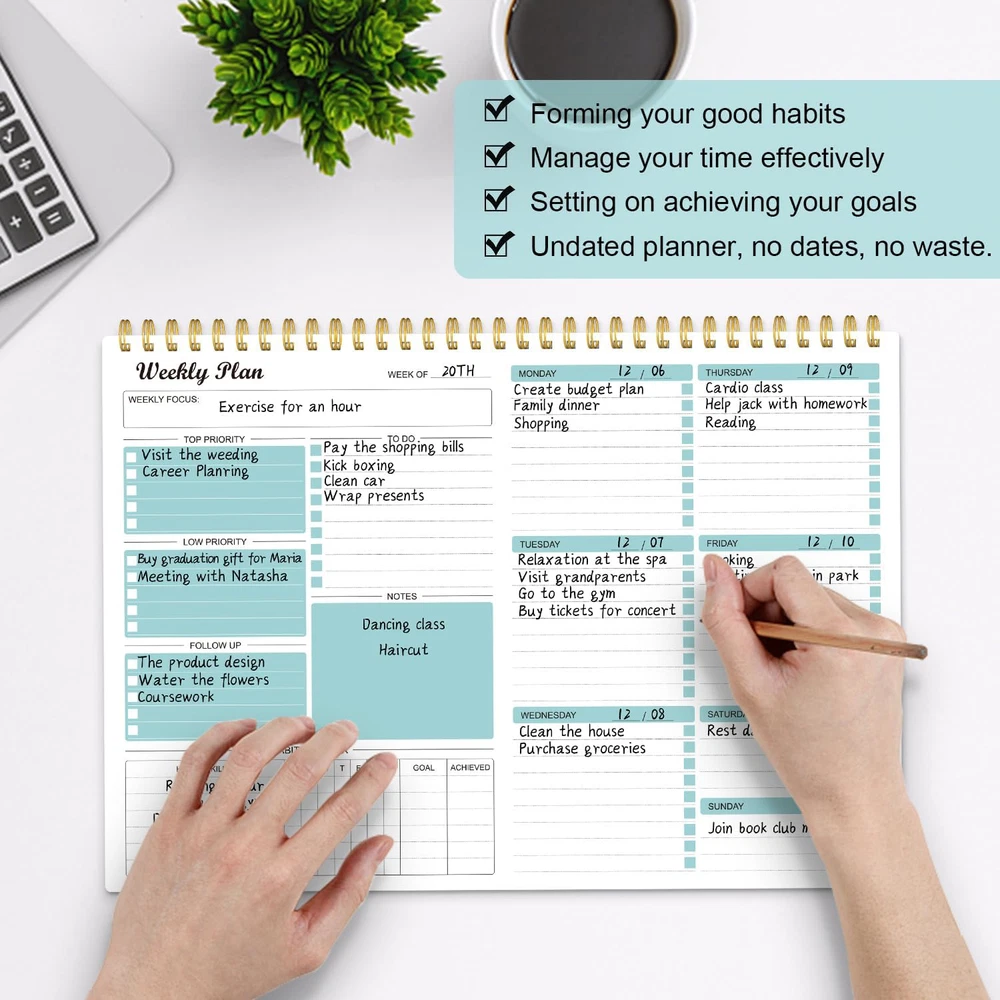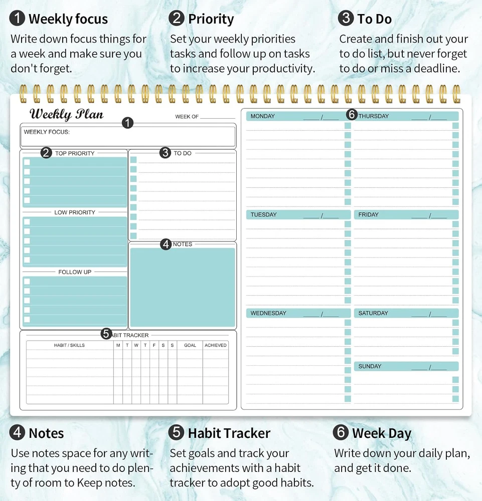 Fast Shipping Great Customer Support Satisfaction Guaranteed DESCRIPTION Shipping Shipping Shipping All domestic packages are shipped for Free (Unless other shipping method was selected during the checkout) Most items ship and arrive much sooner than the estimate delivery date. Usually within 2-3 days from payment. However, we have longer estimates to compensate for the occasional delay or supply chain breakdown. We do not accept P.O. BOXES - PLEASE PROVIDE A PHYSICAL ADDRESS Return Return Return In the event that you would like to return your purchase, we allow returns that are processed within the defined return date (the return date is to be found in the return policy/shipping and handling section) Please contact us for a return authorization and the return shipping address. Payment Payment Payment PayPal is our preferred method of payments it's the quickest, easiest and most secure way to pay for your goods or services online. PayPal offers buyer and seller protection should there be a problem. If you do not have a PayPal account, to get started and buy your first item with us is very easy. Simply click on the 'Buy It Now' button and follow the eBay checkout steps. Select PayPal as the payment method you then will be given the chance to enter your card details in to PayPal's secure checkout in order to pay for your order. Once the payment has been made, you will then be given the opportunity to make your own PayPal account to make paying for your items in the future very easy. Should there be a problem with payment please do let us know. Feedback Feedback Feedback Customer satisfaction is very important to us. If you have any problem with your order,please contact us and we will do our best to make you satisfied, please do not leave a negative feedback before we resolve your problem. We guarantee that your issue will be solved quickly. As long as you are happy with your purchase of , please leave us a positive feedback. Your feedback is very important to us it affects our search placement on eBay. We will leave a positive feedback for you in return automatically once we receive your feedback. Contact Us Contact Us Contact Us If you have any queries, please contact us via ebay. We usually respond within 24 hours on weekdays. Thank you for visiting our ebay store! ✍MAKES YOUR LIFE PRODUCTIVE - This weekly planner notepad focus on meeting any of your needs. A weekly planner notepad includes space to write your to-do list, appointments, and meeting and keep track of all days clearly with the weekly view. Blocks in the weekly page for priority and notes columns for your spontaneous and important events. Manage your time effectively. ✍FUNCTIONAL DESIGN-Premium quality covers and twin-wire binding, a sturdy cardboard backing. classic and stylish combinations of appearance. Premium thick paper, reduces ink bleeding, erasing fraying and shading issues. Provide you with a better writing experience. ✍UNDATED WEEKLY PLANNER- 52 Weeks, undated weekly planning pages, let you pick up exactly right where you left off. There're no unnecessary sections to fill in and no skipping dates or pages. The weekly planner is conveniently undated so you can plan in 2024, 2025, or even 2050! ✍POPULAR PERFECT SIZE The size of this weekly planner is 8.5x11 inches for 52 weeks which is large enough for your scheduling and appointments. A perfectly portable weekly planner journal for work, home, school, and travel is a perfect gift. Undated Weekly Planner Notepad 52-Week To Do List Organizer 8.5x11" Click here to see description Fast Shipping Great Customer Support Satisfaction Guaranteed DESCRIPTION Shipping All domestic packages are shipped for Free (Unless other shipping method was selected during the checkout) We ship within two business days of payment, usually sooner Standard FREE shipping takes between 3-5 business days Expedited shipping takes between 2-3 business days Overnight shipping takes between 1-2 business days We do not accept P.O. BOXES - PLEASE PROVIDE A PHYSICAL ADDRESS We Ship Globally using ebay's GSP, the item is sent to a logistic center in KY and shipped from there to the rest of the world. International customers are responsible for all duties and taxes Contact your local authority for questions related to the amount of duties or taxes you will be responsible for Return In the event that you would like to return your purchase, we allow returns that are processed within the defined return date (the return date is to be found in the return policy/shipping and handling section) Please contact us for a return authorization and the return shipping address. Please contact us for a Return Merchandise Authorization (RMA) number. We advise you to use a reputable carrier service when returning your goods. Please pack all returns appropriately. We ship globally Via eBay's global shipping program (GSP). Thus we don't cover returns for items shipped globally. Buyers returning such items will be refunded ONLY for the item's cost and not for the shipping. please check the Voltage information and make sure it matches the one in your country. In case it's not stated in the description, do ask us. Payment PayPal is our preferred method of payments it's the quickest, easiest and most secure way to pay for your goods or services online. PayPal offers buyer and seller protection should there be a problem. If you do not have a PayPal account, to get started and buy your first item with us is very easy. Simply click on the 'Buy It Now' button and follow the eBay checkout steps. Select PayPal as the payment method you then will be given the chance to enter your card details in to PayPal's secure checkout in order to pay for your order. Once the payment has been made, you will then be given the opportunity to make your own PayPal account to make paying for your items in the future very easy. Should there be a problem with payment please do let us know. Feedback Customer satisfaction is very important to us.