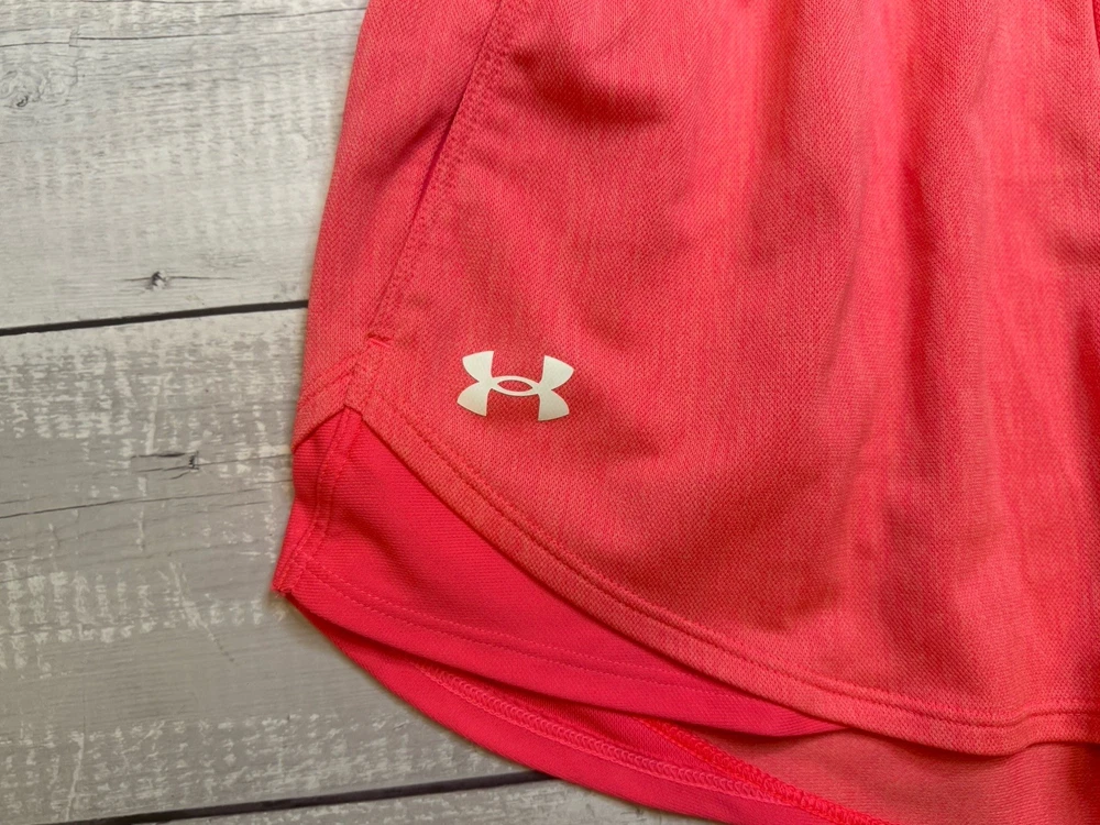 These Under Armour shorts in hot pink are perfect for women who enjoy athletic activities such as running, fitness, gym workouts, and yoga. Made of 100% polyester mesh fabric, they are lightweight, comfortable, and moisture-wicking, making them ideal for all seasons. The pull-on closure and elastic waist ensure a secure and comfortable fit, while the 3-inch inseam provides coverage during various activities. With features like easy care, pockets, and breathability, these athletic shorts are a stylish and practical choice for active women looking for a versatile and colorful addition to their activewear collection.