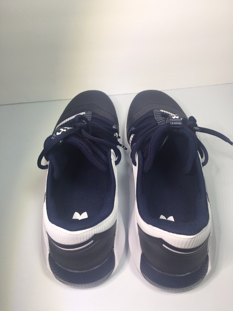 These Under Armour sneakers are a game-changer! The lightweight mesh keeps my feet cool, while the synthetic panels and webbed lacing give amazing support. The cushioned midsole is super comfy, and the TPU toe cap adds durability. No slipping, no blisters—just perfect fit and stability. Love the sleek navy design too! Great for workouts or casual wear.