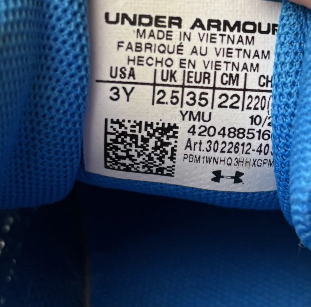 UK Shoe Size: 2.5 Occasion: Activewear, Casual, Travel Outsole Material: Rubber Character: Boy US Shoe Size: 3 Personalize: No Type: Athletic Brand: Under Armour Insole Material: Foam Performance/Activity: Running & Jogging, School, Walking Color: Blue Vintage: No Model: UA Charged Scramjet 3 Lining Material: Fabric Season: Fall, Spring, Summer, Winter Signed: No Handmade: No Toe Shape: Round Toe Shoe Width: M Upper Material: Mesh Closure: Pull On EU Shoe Size: 35 Style: Sneaker Cushioning Level: Moderate Customized: No Shoe Shaft Style: Low Top Product Line: UA Charged Scramjet 3 Department: Boys Accents: Logo Features: Breathable, Cushioned Country/Region of Manufacture: Vietnam