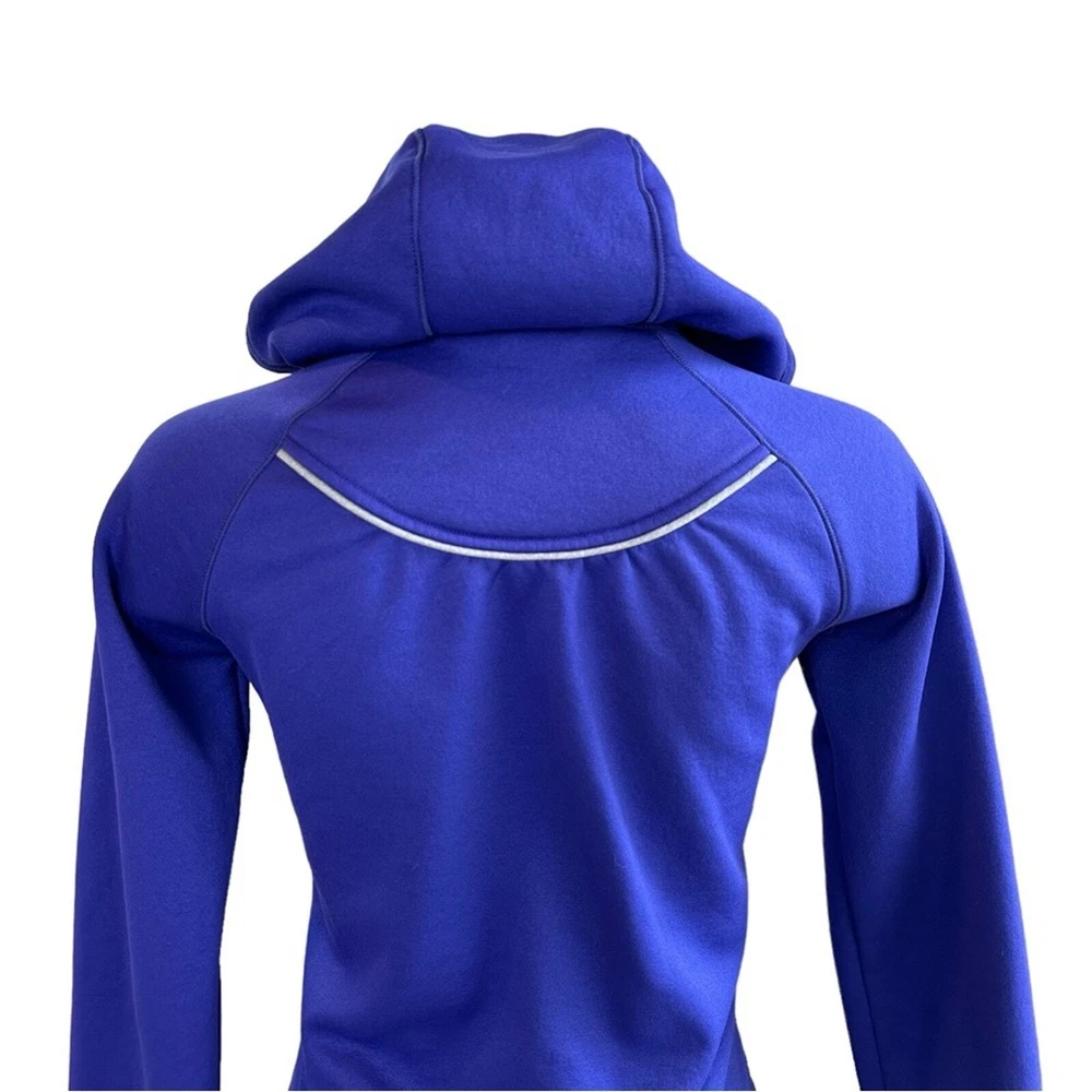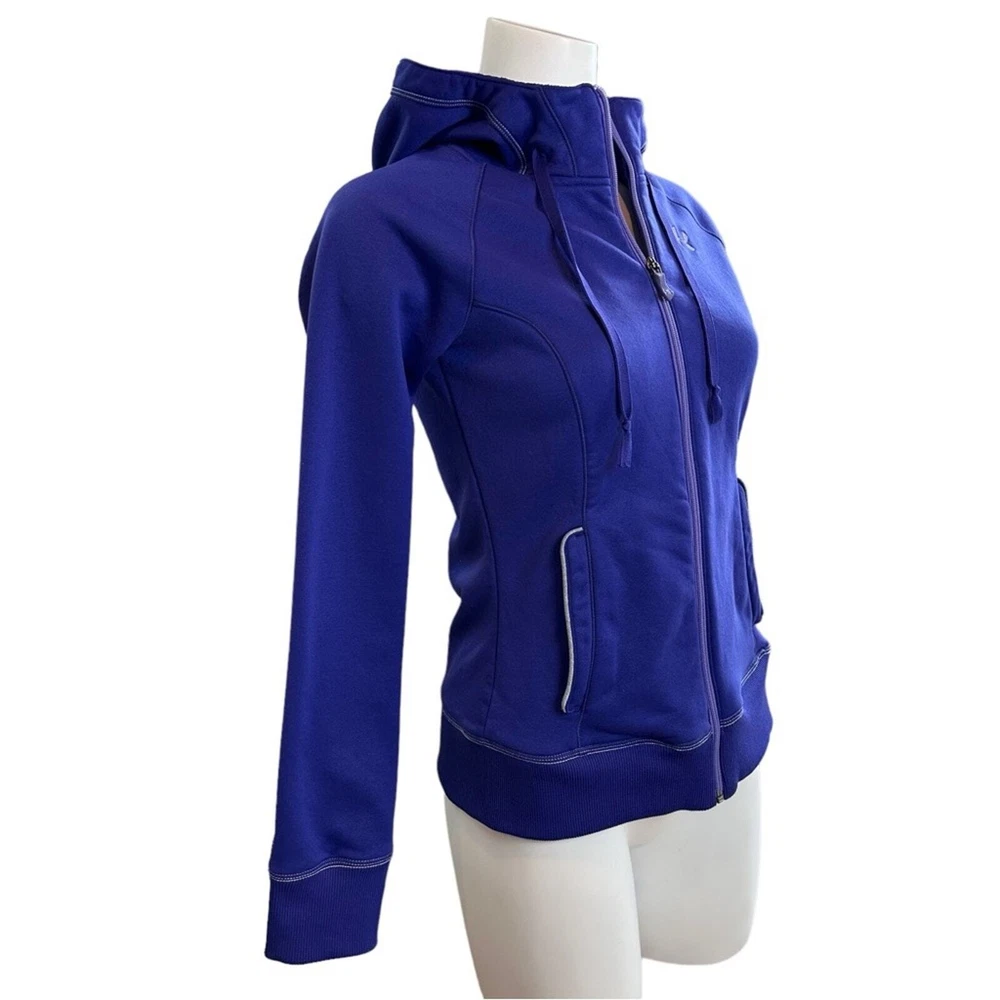 Beautiful purple color athletic jacket Zip front Drawstring hood Front pocket Approx measurements shown in photos No stains/holes
