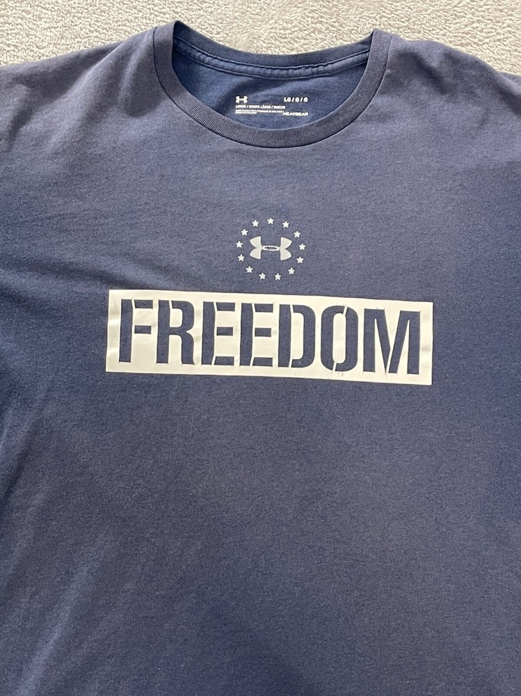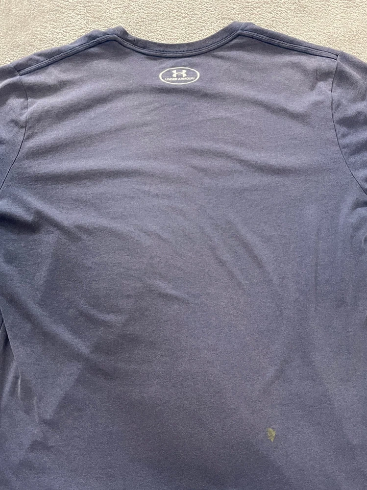 Thank you for your interest in this great looking Under Armour HeatGear Shirt! We do our best to provide the most accurate description so you know exactly what you’re buying. If there’s something we missed or you decide this piece just isn’t right for you, you’re welcome to return it within 30 days of delivery no questions asked. Every purchase supports small business and will be handled with care, all orders ship within one business day and often the same day! Size: Men's Large Fit: Regular Fit Material: 60% cotton 40% polyester Color: Blue Condition: Good pre-owned condition, staining shown in photos Armpit to armpit - 23" Top to bottom length - 27" *All clothing items have been properly cleaned per eBay standards