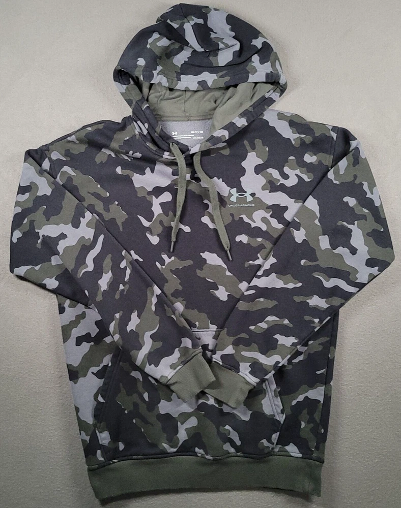 Sleeve Length: Long Sleeve Closure: Drawstring Fit: Relaxed Personalize: No Character: Camo Neckline: N/A Material: Cotton, Polyester Country/Region of Manufacture: Malaysia Color: Multicolor Pattern: Camouflage Product Line: Coldgear Type: Hoodie Garment Care: Machine Washable Department: Men Size: S Features: Hooded, Pockets Personalization Instructions: in good condition Size Type: Regular Vintage: No Theme: Colorful, Outdoor, Sports Style: Pullover Performance/Activity: Hunting Accents: Logo Fabric Type: Microfiber Season: Fall, Spring, Winter Brand: Under armour