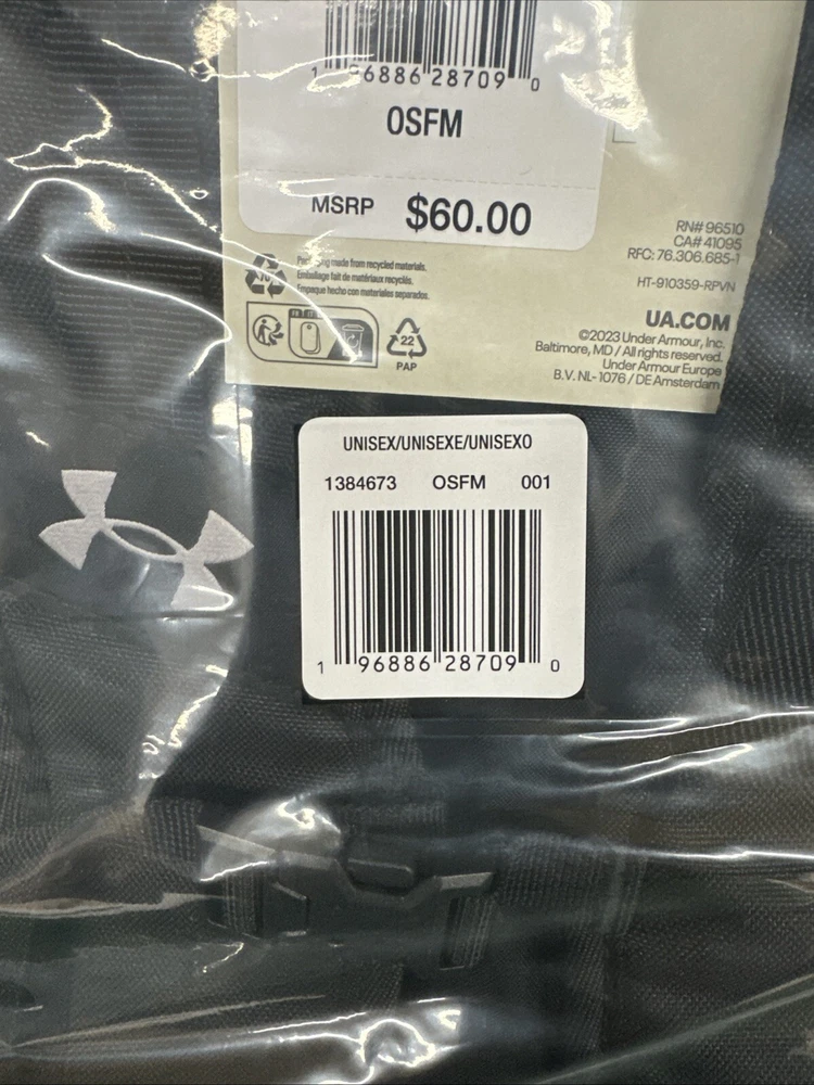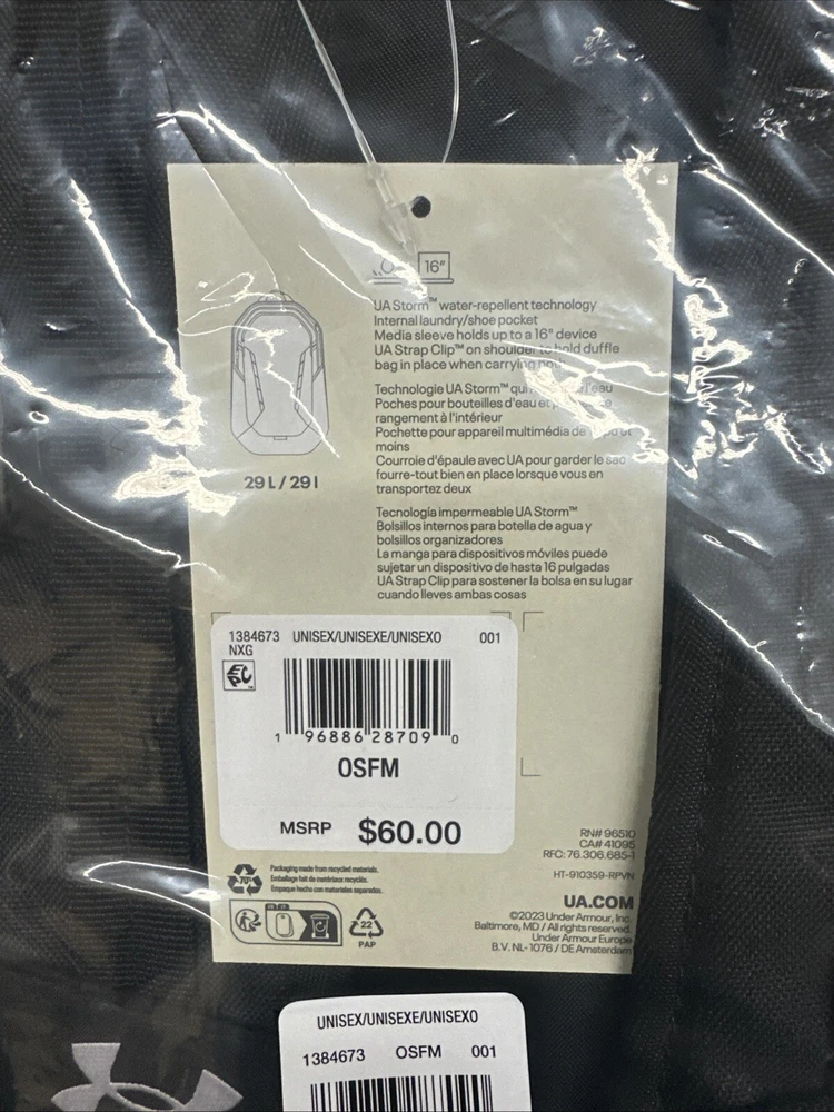 This is a new with tags Under Armour Hustle 6.0 Backpack in black. It features a solid pattern, zip closure, polyester material, and a shoulder strap handle style. The backpack is designed with a laptop sleeve, adjustable straps, water-resistant fabric, and multiple pockets for organization. It is lightweight and has a bottle pocket. The model is suitable for unisex adults and is ideal for everyday use or outdoor activities. SKU- H59 Date- 01/04/25 Listed by-LM Condition- NWT Shade/size- BLACK Inspected to the best of our abilities and looks to be in good condition. **Item has sticker for SKU purposes**