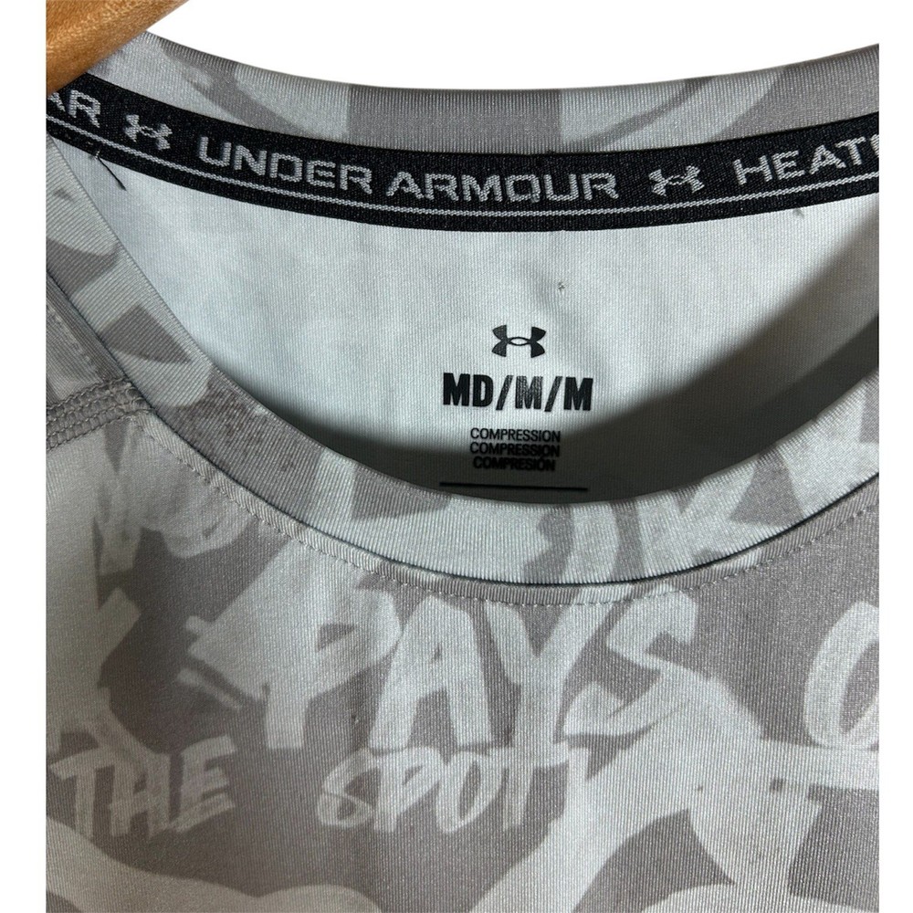 This Under Armour tee is a game-changer! The compression fit keeps everything locked in during intense workouts while the moisture-wicking fabric keeps me cool and dry. The bold colorblock design and motivational print give it a sharp, athletic look. Super lightweight but durable—perfect for lifting, running, or training. Fits true to size with a snug, supportive feel. Absolute must-have for active lifestyles!