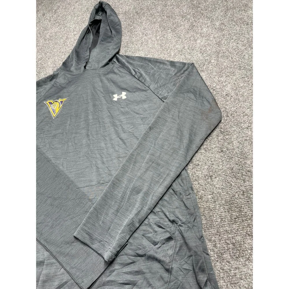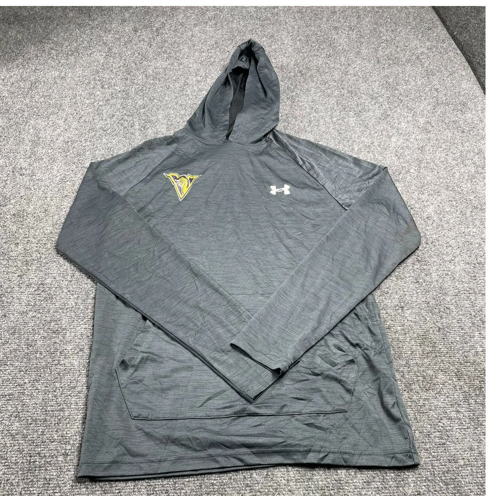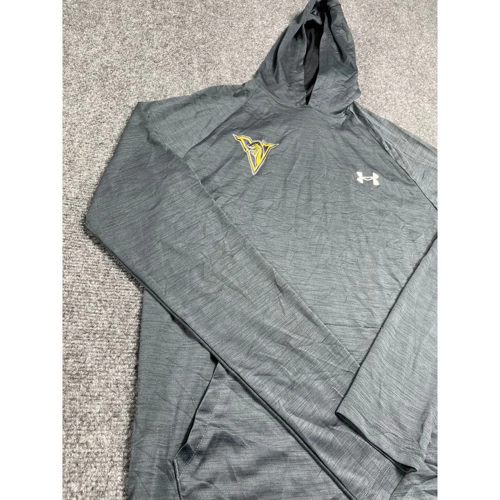 Under Armour Men's Gray Hoodie Long Sleeve Sweat Shirt Pocket Size SM Product Detail • Brand: Champion • Type: Sweatshirt • Color: Blue Condition: This Under Armour men's gray hoodie is in good condition. There are visible stains on left and right arm. The fabric is soft and comfortable, and the stitching is intact. The hoodie features a team logo on the chest and a kangaroo pocket. It's perfect for casual wear or workouts. PLEASE NOTE: Please review the pictures before making a purchase. We value your business and encourage you to send a message if you have any issues or concerns I answer most questions instantly! Thank you!