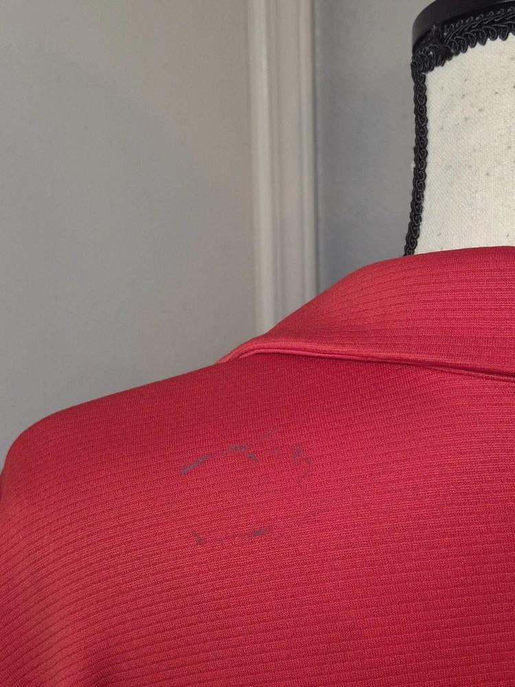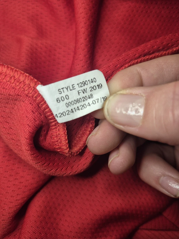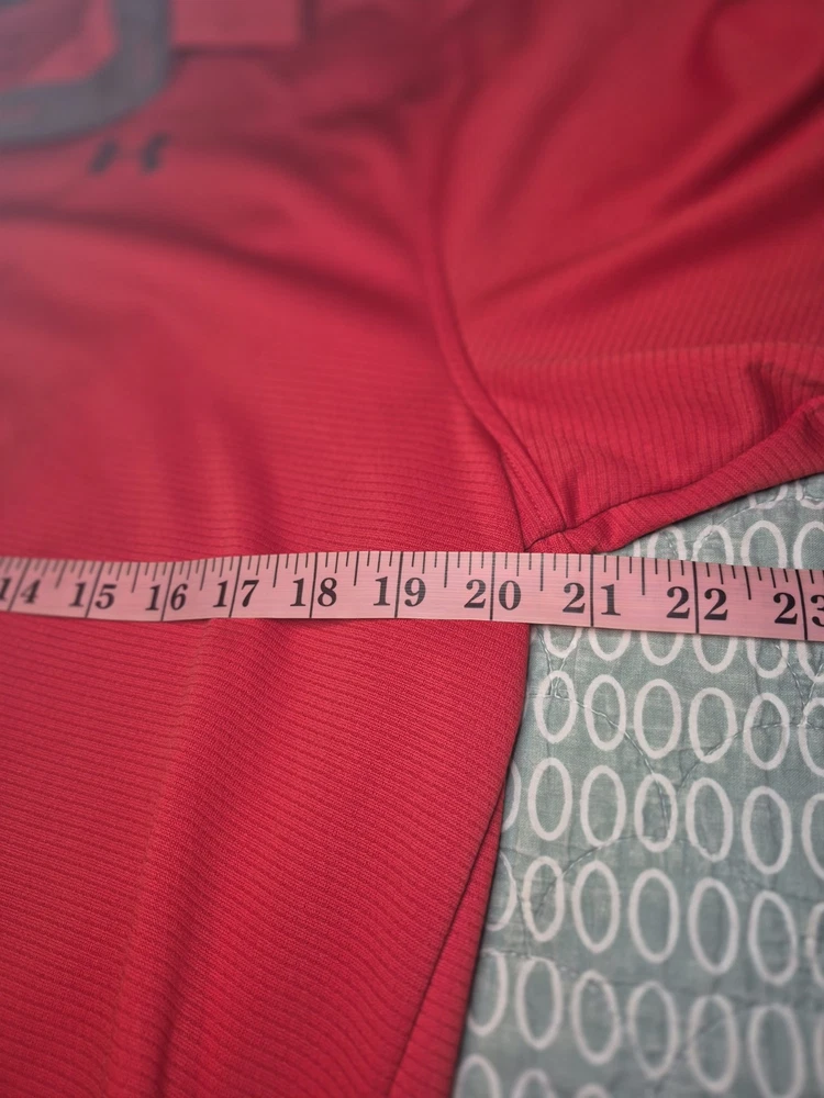 Under Armour Men's Red Polo Shirt Elevate your style with the Under Armour Men's Red Polo Shirt. Perfect for casual outings or a day at the office, this shirt combines comfort and fashion effortlessly. Used. There is a snag on the front and a what looks like sticker residue on the back. Neither are very noticeable and both are pictured.