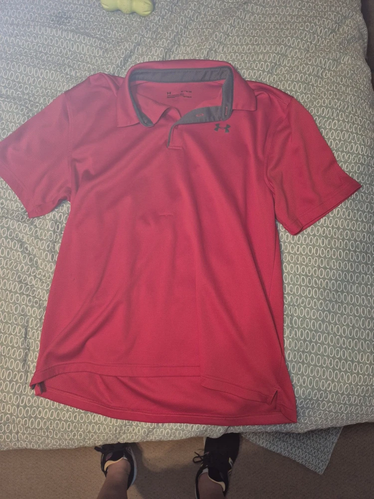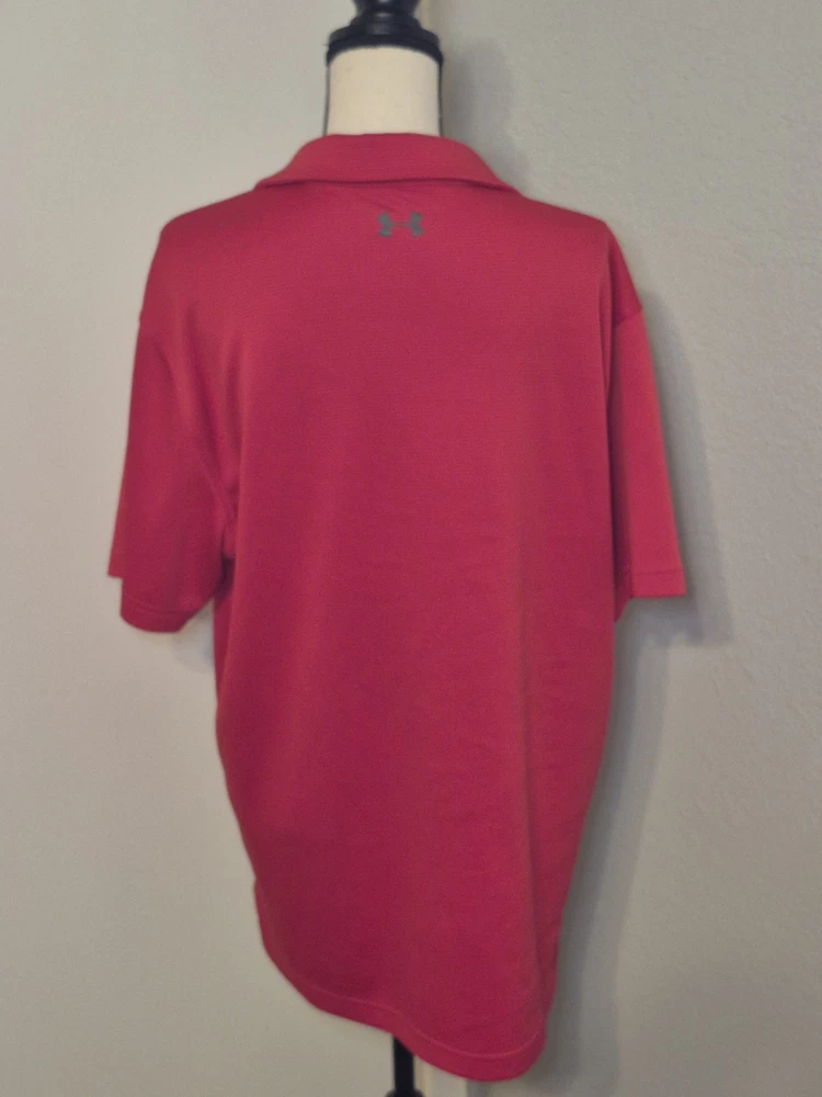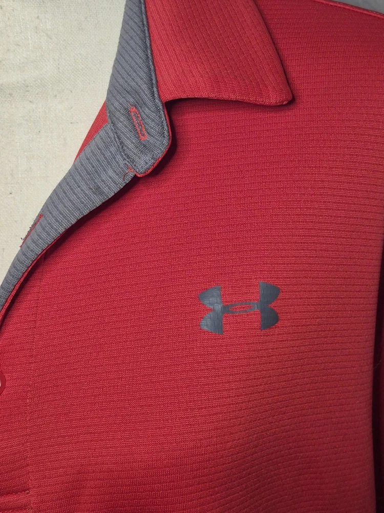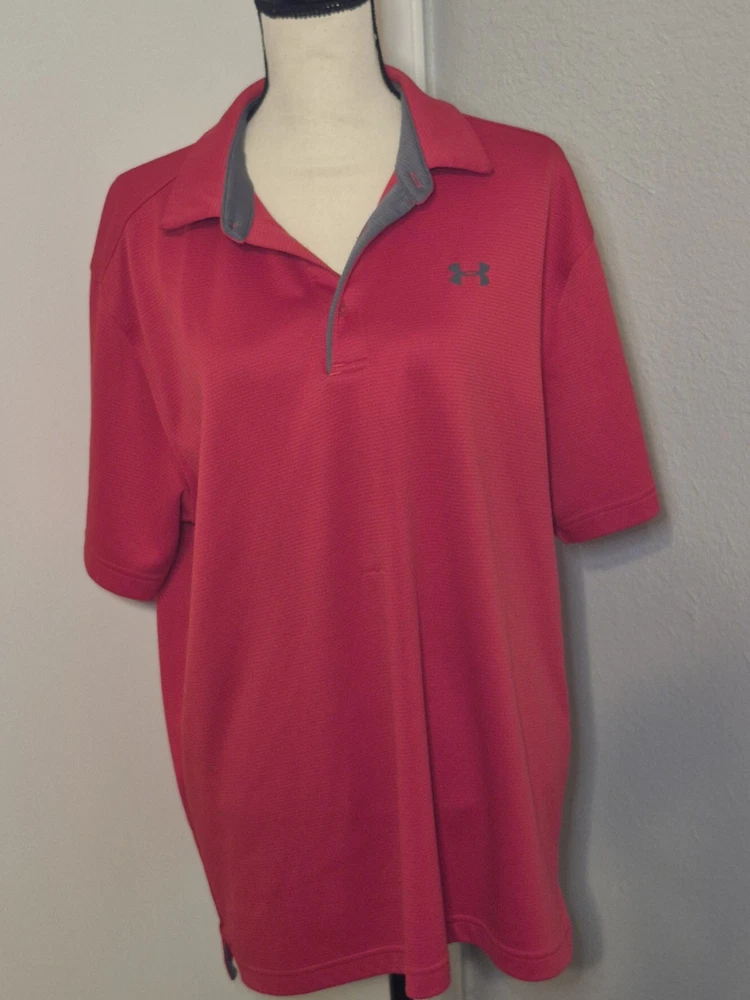 Brand: Under armour Garment Care: Machine Washable Department: Men Personalize: No Season: Spring, Fall, Summer Sleeve Length: Short Sleeve Collar Style: Spread Performance/Activity: Golf Pattern: Solid Size: XL Handmade: No Material: Polyester Blend Size Type: Regular Product Line: Under Armour HeatGear Features: Breathable Theme: Sports, Logo Vintage: No Type: Polo Color: Red Occasion: Casual, Activewear Closure: Button Fit: Regular Neckline: Collared Accents: Logo, Button
