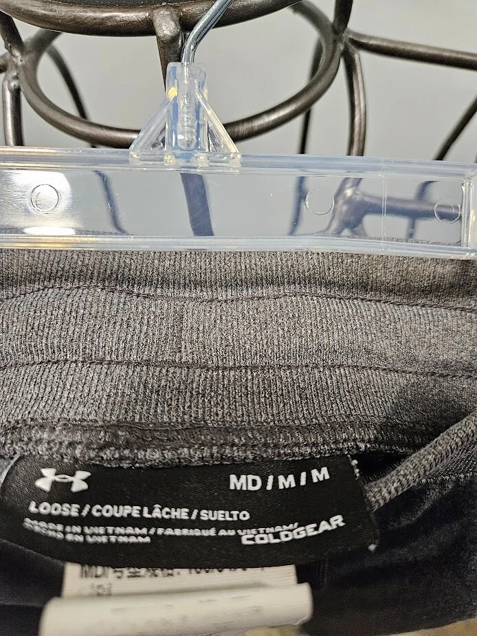 Under Armour Loose Coldgear Medium men's pants, Gray, elastic waistband and Pull Cord, Pockets, Logo on front and name on back. Ships from a smoke free, pet free home! Please see all photos for exact item condition. Thank you for checking out my store! All items are shipped within 1 or 2 business days. Make a bundle to save on shipping cost. Wash to Wear