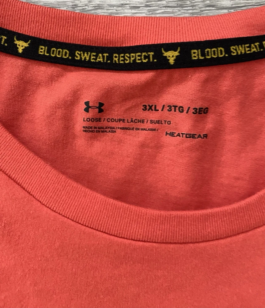 Under Armour UA Project Rock Brahma Bull Black T-Shirt in big & tall size 3XL. The shirt is made of a lightweight, blended fabric that keeps you comfortable during any activity or just casual wear. The shirt features a crew neck and short sleeves. The shirt has a solid pattern with the Under Armour Project Rock logo as an accent.Excellent condition. Armpit to armpit 27” Length 32”