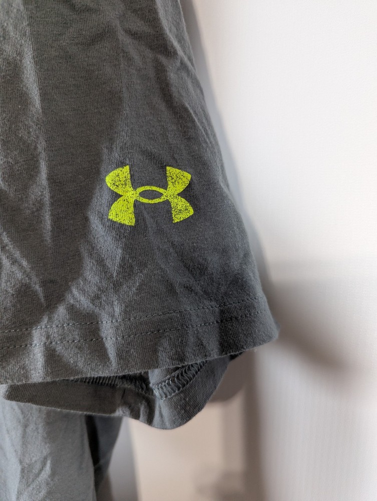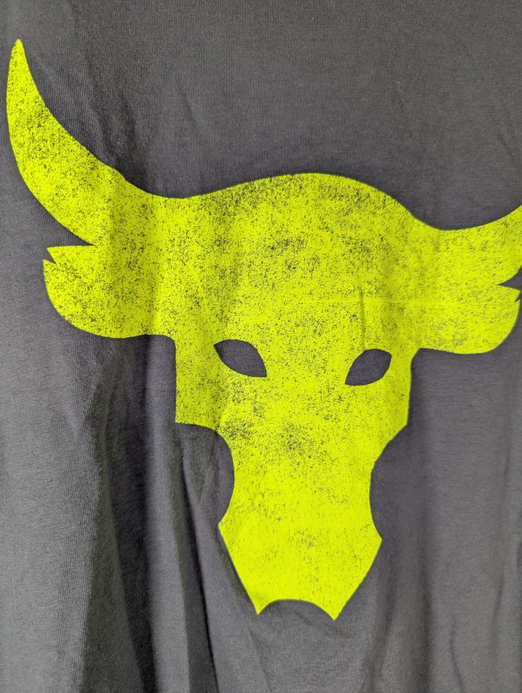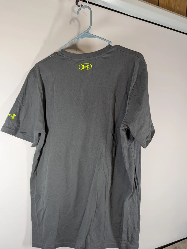 Under Armour Project Rock Logo T-Shirt Men XL Volt Gray Loose Performance. Condition is Pre-owned. Shipped with USPS Ground Advantage.