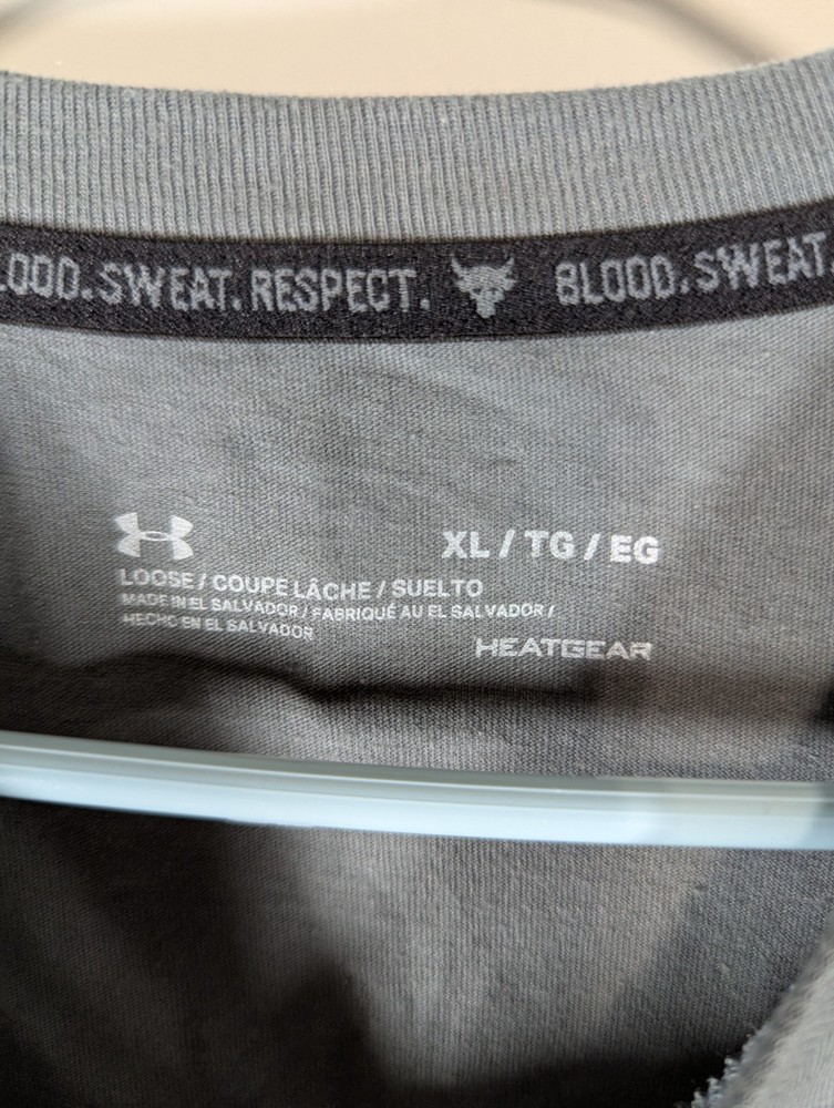 Material: Cotton, Cotton Blend, Polyester Accents: Logo Neckline: Crew Neck Style: Pullover Performance/Activity: CrossFit, Cross Training, Gym & Training, Running & Jogging, Soccer Department: Men Type: T-Shirt Closure: Pullover Collar Style: Band Sleeve Type: Classic/Fitted Sleeve Sleeve Length: Short Sleeve Color: Gray Features: Breathable, Lightweight, Moisture Wicking, Quick Dry Occasion: Activewear, Casual Fit: Relaxed Fabric Type: Jersey MPN: 1345812 Brand: Under armour Fabric Wash: Medium Product Line: Under Armour Project Rock Vintage: No Garment Care: Machine Washable Pattern: Graphic Print Size Type: Regular Size: XL