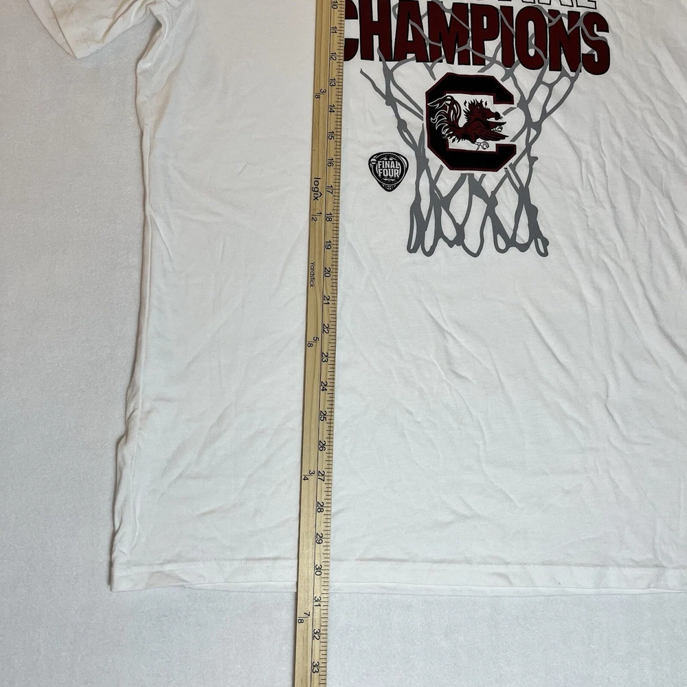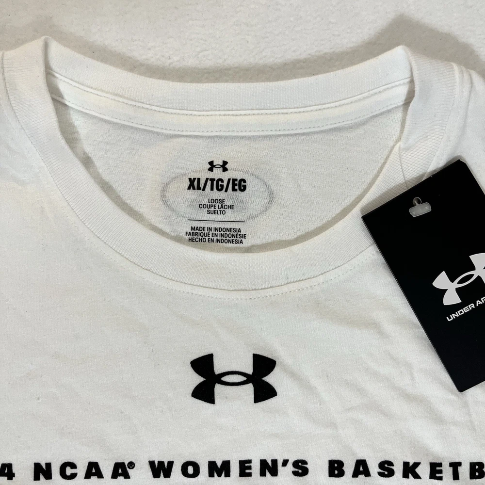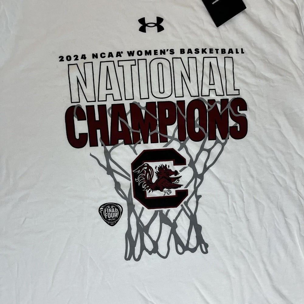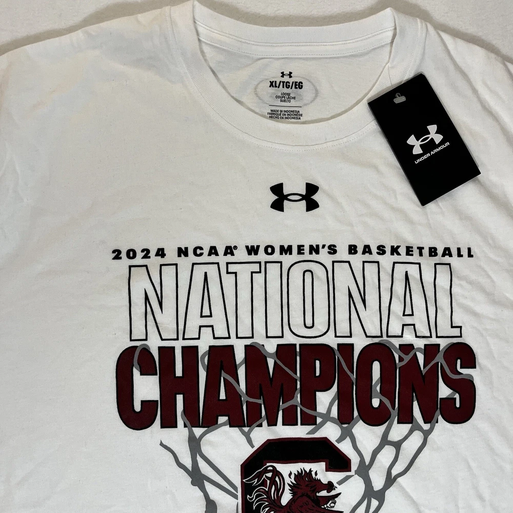 General Notes Color(s) may slightly differ due to monitor settings and lighting. Please check out our other listings as you may be surprised at what you find. Please read the item description and view all the photos. The photos will provide a good representation of the item (see the first note above about colors). Any flaw(s) will have a dedicated photos to show the flaw(s) You may want to compare the measurements of this item to something you already have that fits. If you experience a problem with your item, please contact us so that we can attempt to fix the issue promptly. UA South Carolian Gamecocks Women's National Champs T-Shirt Men’s XL Company: Under armour Condition: New With Tags Color: White Style: Regular Fit Sleeves: Short Sleeve Collar: Crew Neck Material: Cotton Size: XL (Extra Large) Sleeve Length: Short Sleeve Shirt Length: 30.5” (from base of collar to bottom of shirt) Shirt Width: 23” (from pit to pit) Wash Instructions: Machine Wash 2024 NCAA Women's Basketball NATIONAL CHAMPIONS and Team Logo graphics on front in Maroon and Black See photos for measurements and shirt details and appearance Measurements are approximate (see photos) Item Description from the Seller Add a commemorative tee to your South Carolina gear with this 2024 Women's Basketball National Championship piece and show your pride in style. This clean white tee with maroon and black printed graphics make for a nice look. This Men's Size XL is New With Tags. Not many of these left, so Buy t Now, here. Inv. #0414