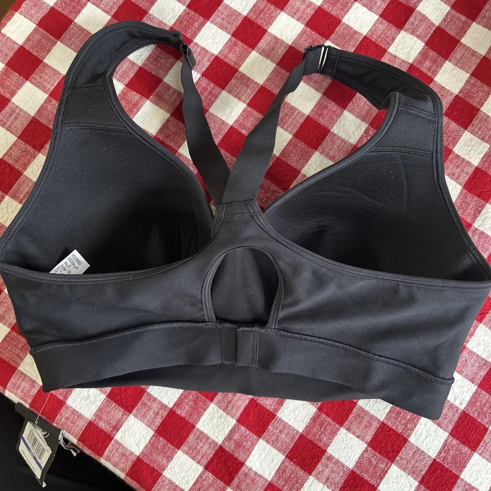 NWT. This is a high-support Under Armour Sports Bra in black, featuring a solid pattern with a crossback strap design for activewear use. The bra is size 36D with a wireless underwire type, full cup coverage, and hook & eye closure. Made from a blended fabric, it is machine washable and suitable for regular wear. The brand is Under Armour, ensuring quality and performance for women engaged in various physical activities.