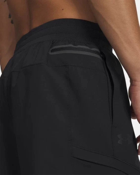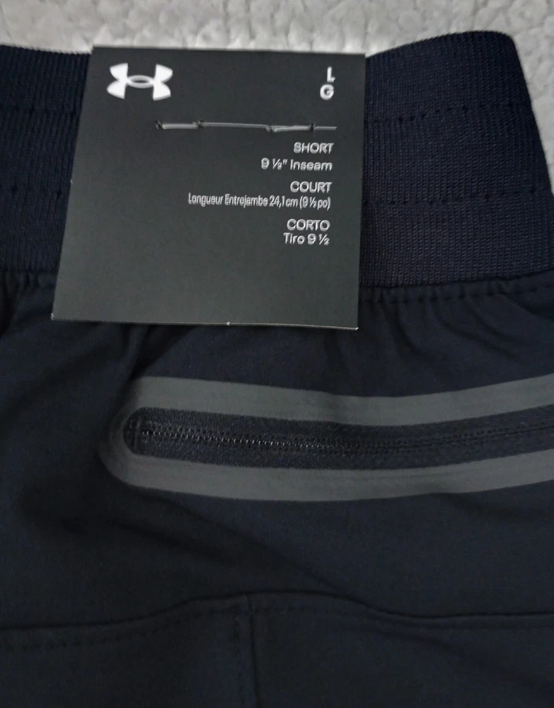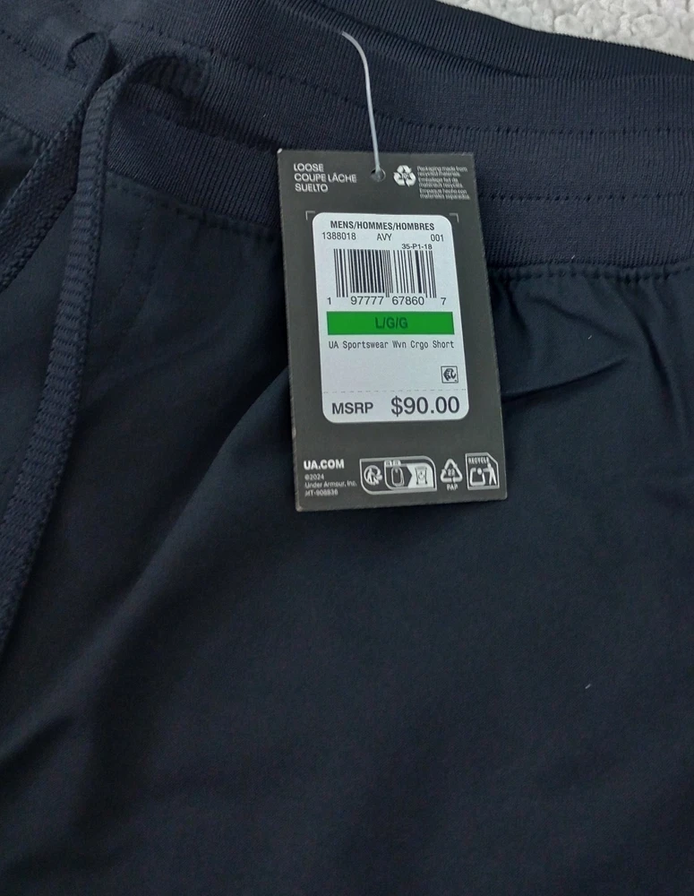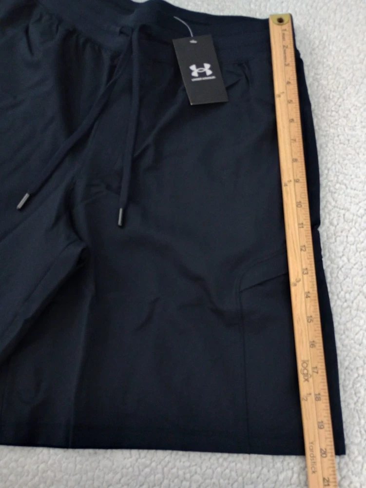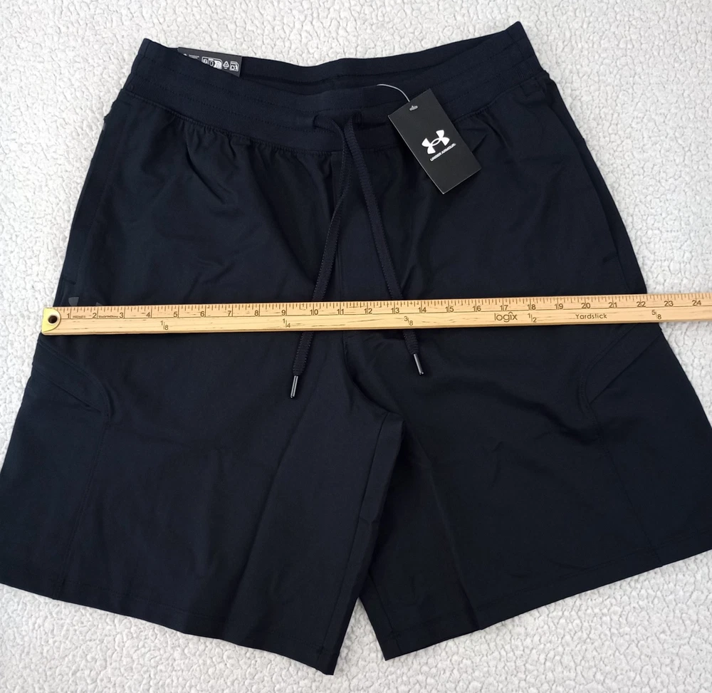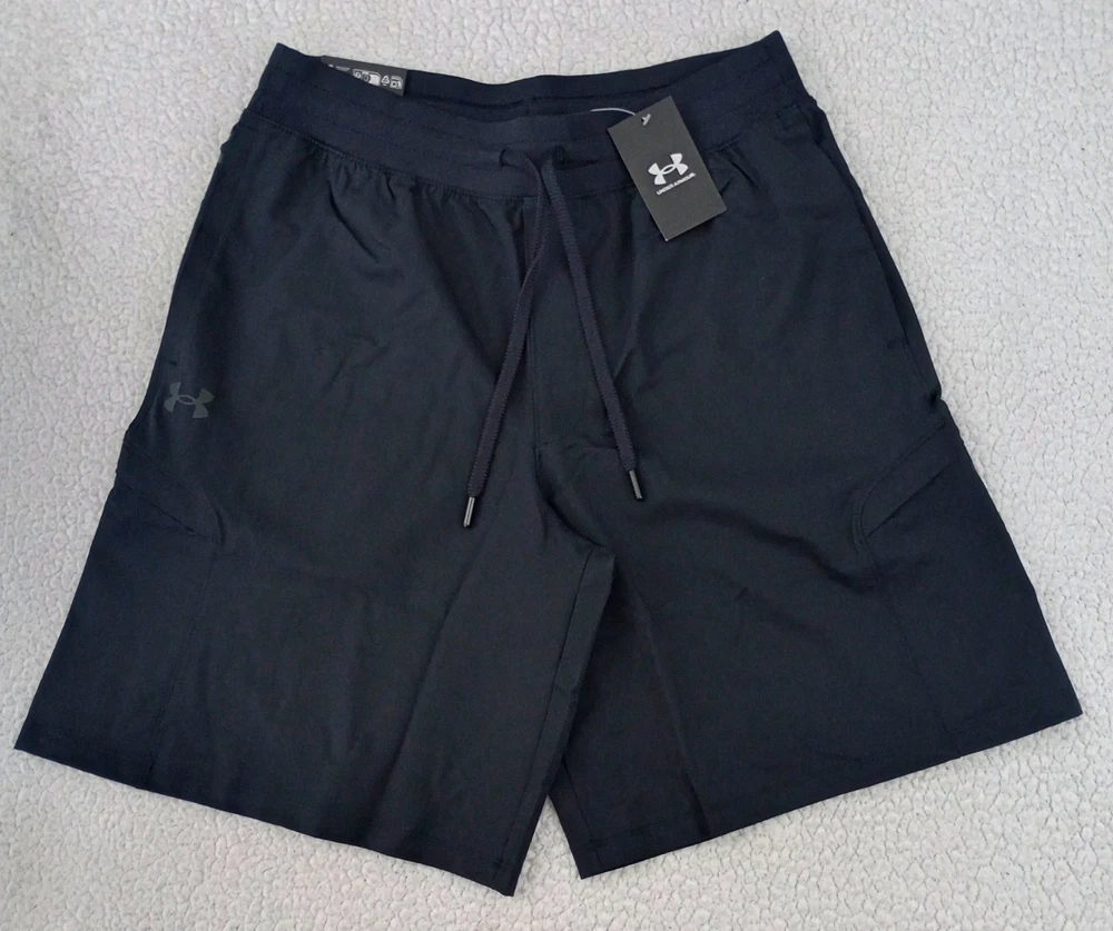 Under Armour Sportswear Woven Men's 9.5" Cargo Black Shorts Size Large MSRP $90. The goal with the UA Woven collection was to make the perfect set of warm-ups that keep your muscles ready, work for any sport, and also pack up super-small in your bag, so you can take them anywhere. Water-Resistant 4-Way Stretch UA Storm technology repels water without sacrificing breathability Light, durable & super-comfortable stretch-woven fabric 4-way stretch material moves better in every direction Stretchy ribbed waistband with external drawcord Open hand pockets, secure zip side pocket & cargo pockets Uses a fluorine-free water repellent treatment