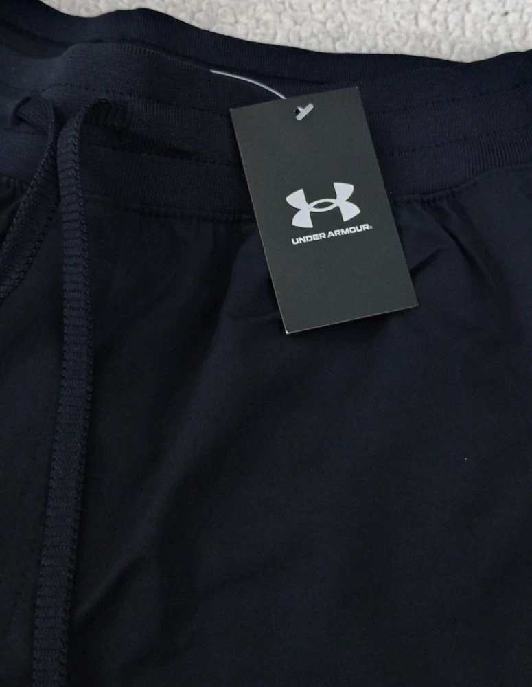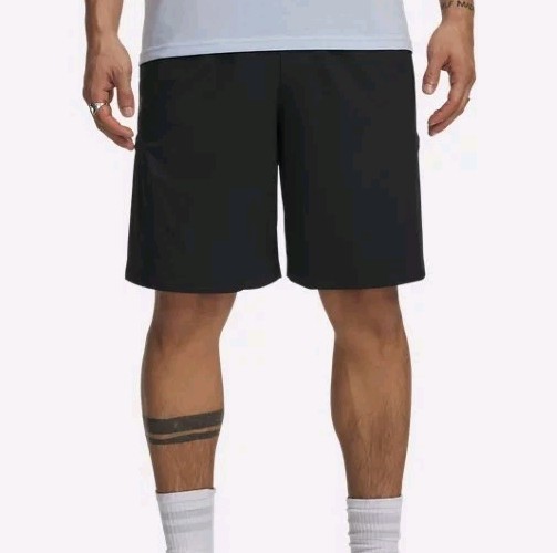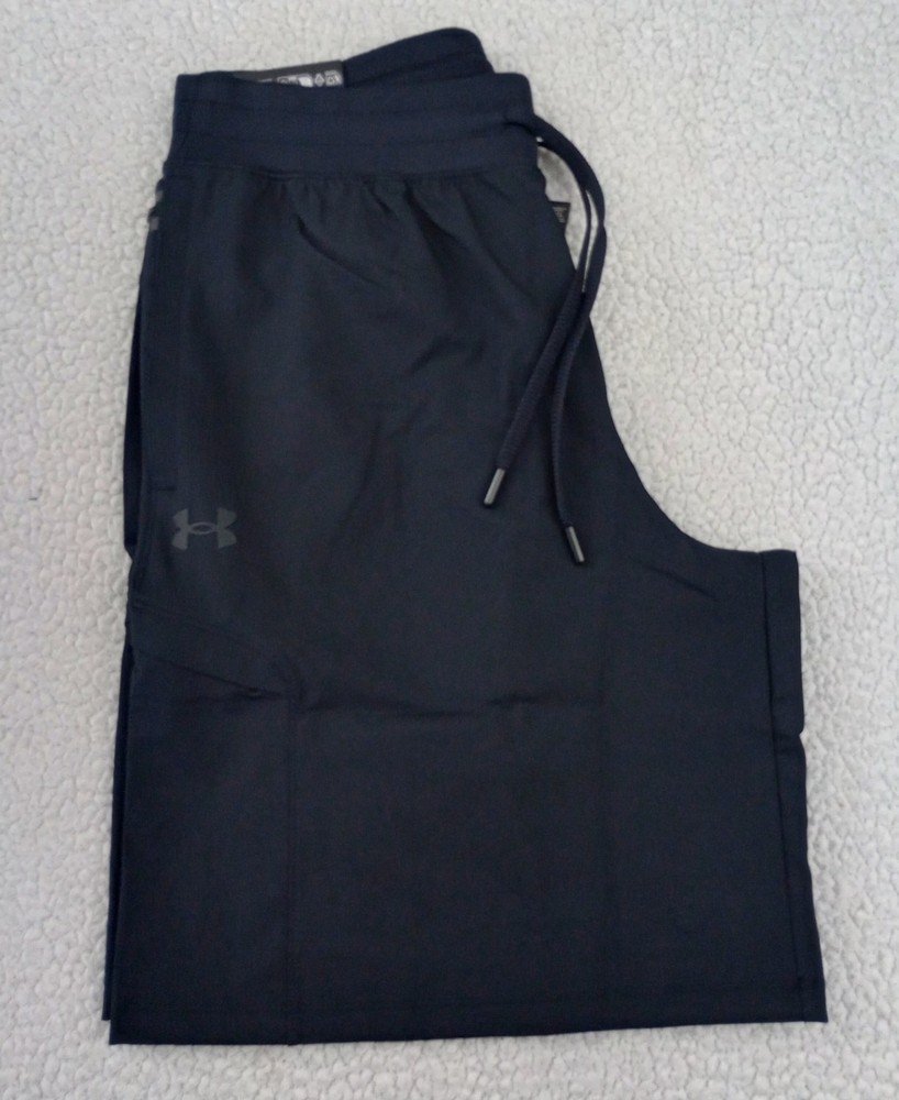Features: Pockets, Elastic Waist, Drawstring, Breathable, Easy Care, Lightweight, Moisture Wicking, Quick Dry Vintage: No Theme: Logo, Outdoor, Sports Performance/Activity: Gym & Training, Running & Jogging, Cross Training, Bodybuilding, CrossFit, School, Walking, Weightlifting Department: Men Inseam: 9.5 in Style: Athletic Fabric Type: Blended Fabric Color: Black Occasion: Activewear Size: L Size Type: Regular Waist Size: 36 in Material: Polyester Fit: Regular Brand: Under armour Character: UA sportswear