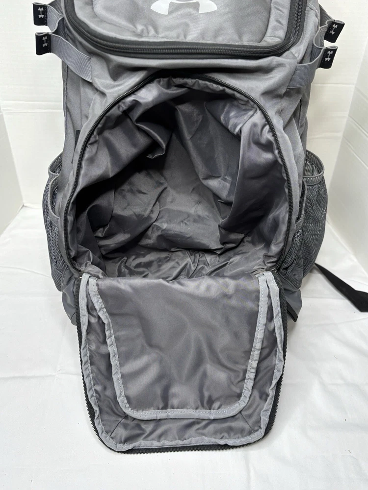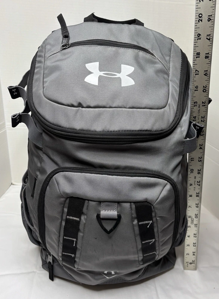 Color:GrayUPC:Does not applyBrand:Under armourModel:Under Armour Stormgtin13:Does not applyClosure:ZipFeatures:Adjustable Strap, 4 Bat PocketsDepartment:MenSize:LargeCharacter:StormTheme:SportsMaterial:Nylon, PolyesterStyle:Backpack