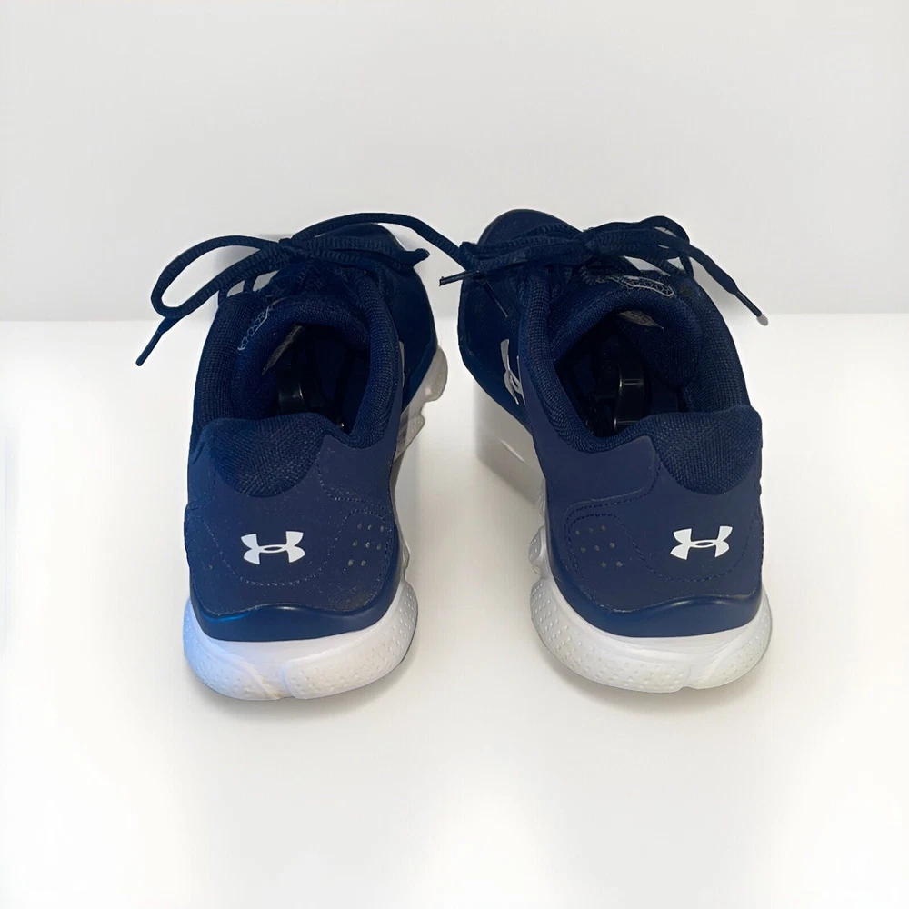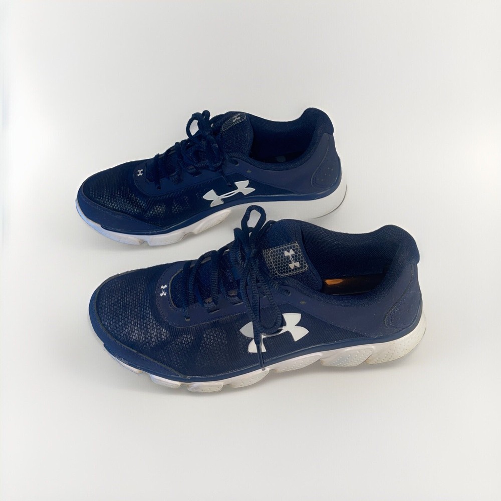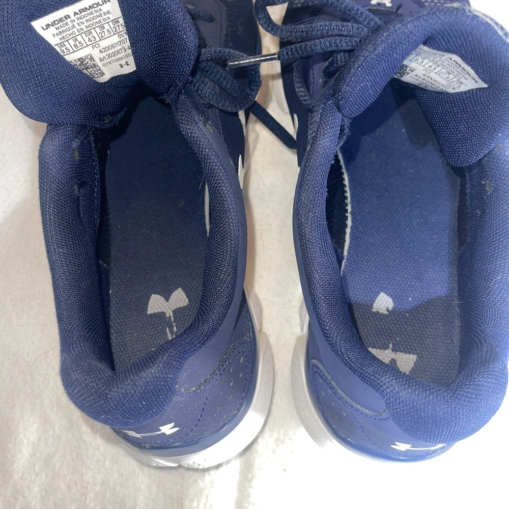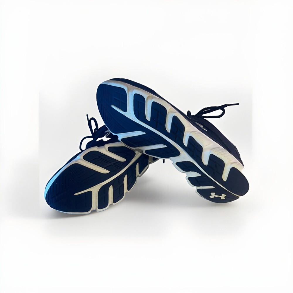 Elevate your running game with these Under Armour UA 9 running shoes. Designed for men in a classic blue and white colorway, these shoes are perfect for any athletic activity. With a US shoe size of 9.5, they are sure to fit comfortably and provide the support you need. Crafted by the popular brand Under Armour, these shoes are made for performance. They are perfect for running, and their design ensures maximum comfort and support for your feet. Whether you're an avid runner or just starting out, these shoes are a great choice. Don't miss the opportunity to elevate your athletic game with these Under Armour UA 9 running shoes.