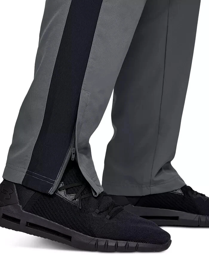 Wind-resistant and lightweight, these Under Armour pants give you the loose fit and breathable feel you need to train in comfort. Product Features Encased elastic waistband with drawstring Imported Zippers at ankles; contrast panel at side Pockets at sides