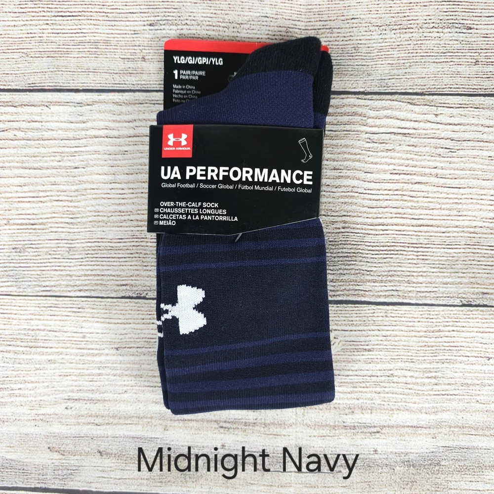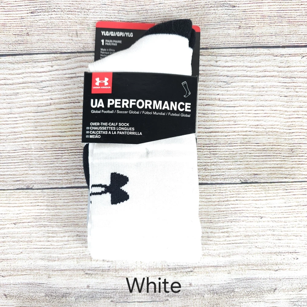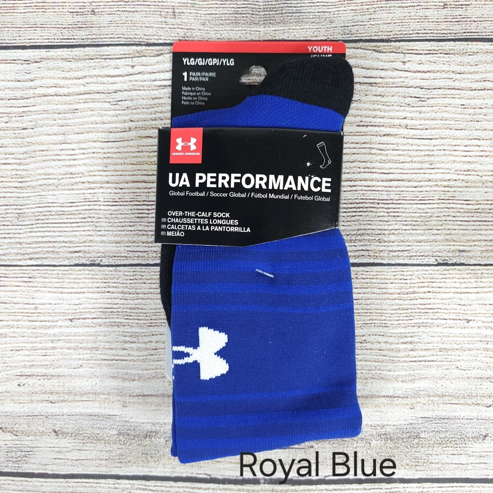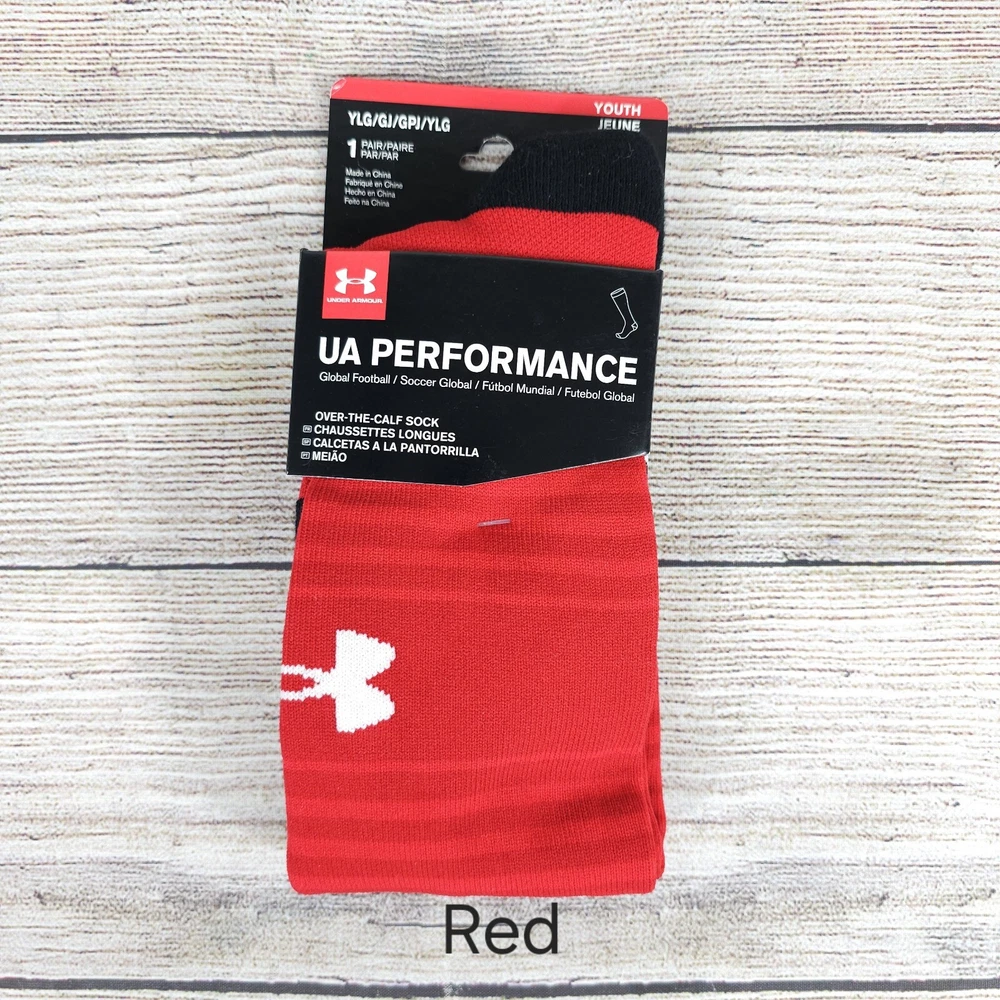 Elevate your soccer game with these Under Armour UA Performance Soccer Socks. Designed for unisex kids, these socks come in various colors and are made of 68% polyester, 26% cotton, 3% polyester, and 3% spandex. The socks are perfect for soccer enthusiasts and are designed to provide comfort and support during the game. The over-the-calf socks are available in youth size large and are suitable for both boys and girls. These socks are the perfect addition to your soccer gear and will help you perform at your best. Made in China, these socks are not handmade and are perfect for those looking for a comfortable and durable pair of socks.