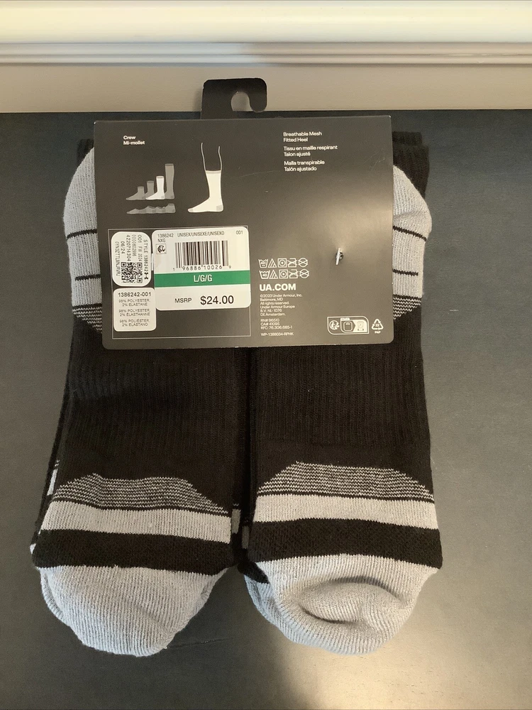 Elevate your workout game with these Under Armour UA Performance Tech Crew Unisex Socks. The socks are made of a blend of polyester, spandex, and cotton, making them durable and comfortable to wear. They come in a pack of six pairs, with a full toe style and over the calf length. These athletic socks are perfect for gym and training activities, and are machine washable for easy care. The black and graphite color combination is stylish and versatile, while the size range of 8.5-13 ensures a comfortable fit for most men. Get your hands on these high-quality socks from Under Armour, a trusted brand in the athletic wear industry.