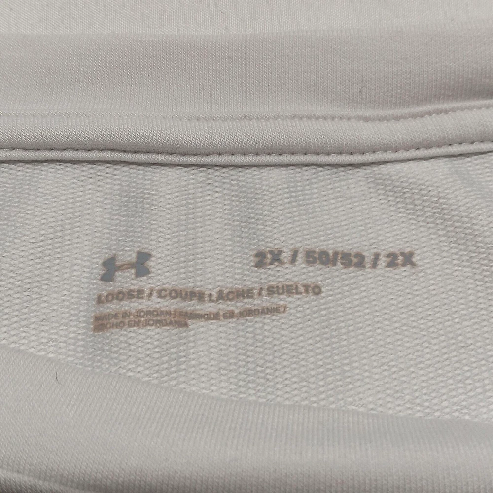Under Armour UA Women's Rival Terry Radiant Crew 2X Plus Gray Crop Loose Fit Top This item is in good pre-owned condition with minimal washwear. Please note there is a faint pen mark on the left shoulder that could use a spot treatment. See all photos as this is the exact garment you will receive. Measurements taken with item laying flat- armhole to armhole is 27", length from high point of shoulder to bottom hem is 24.5". Polyester blend fabric, machine wash cold. Thanks for looking!