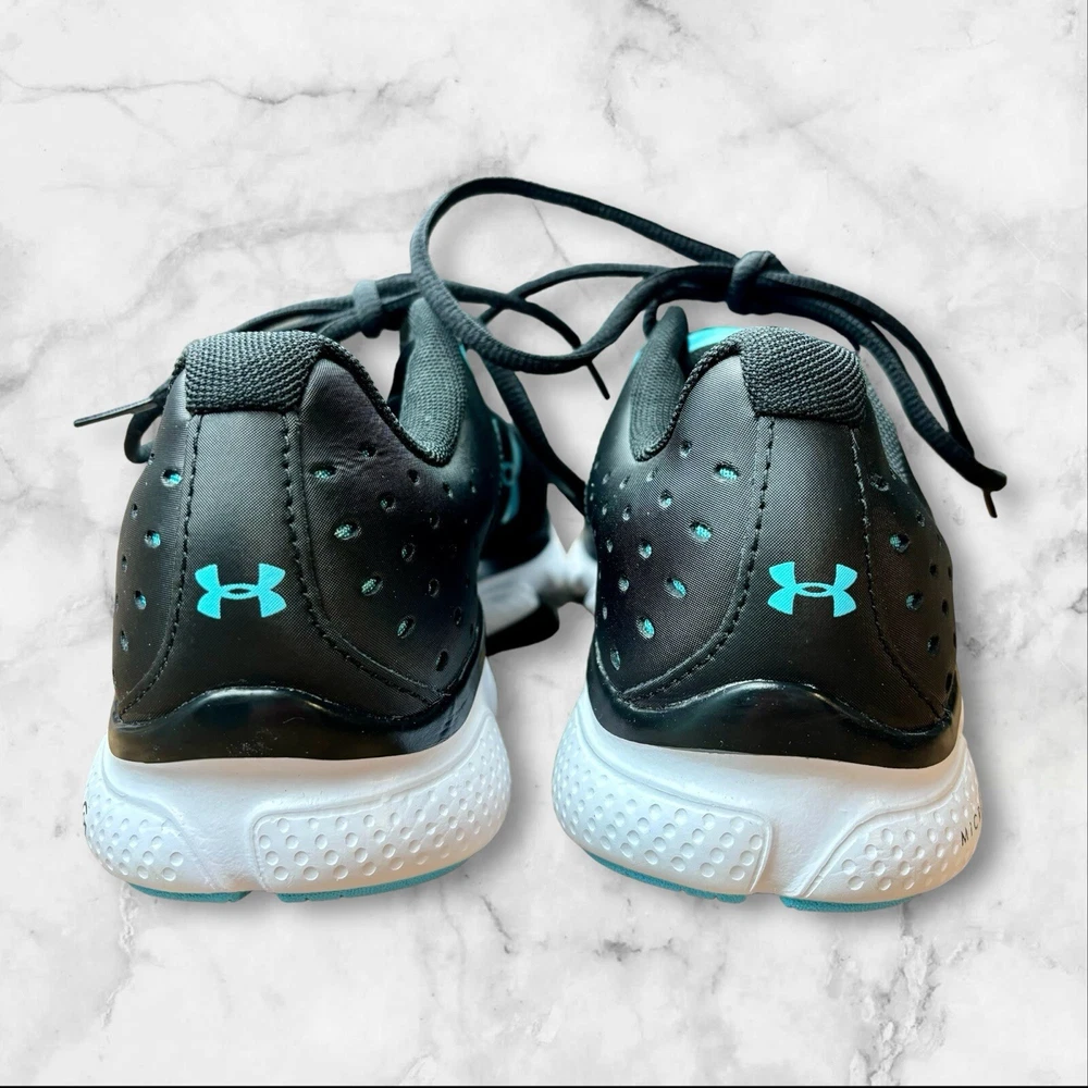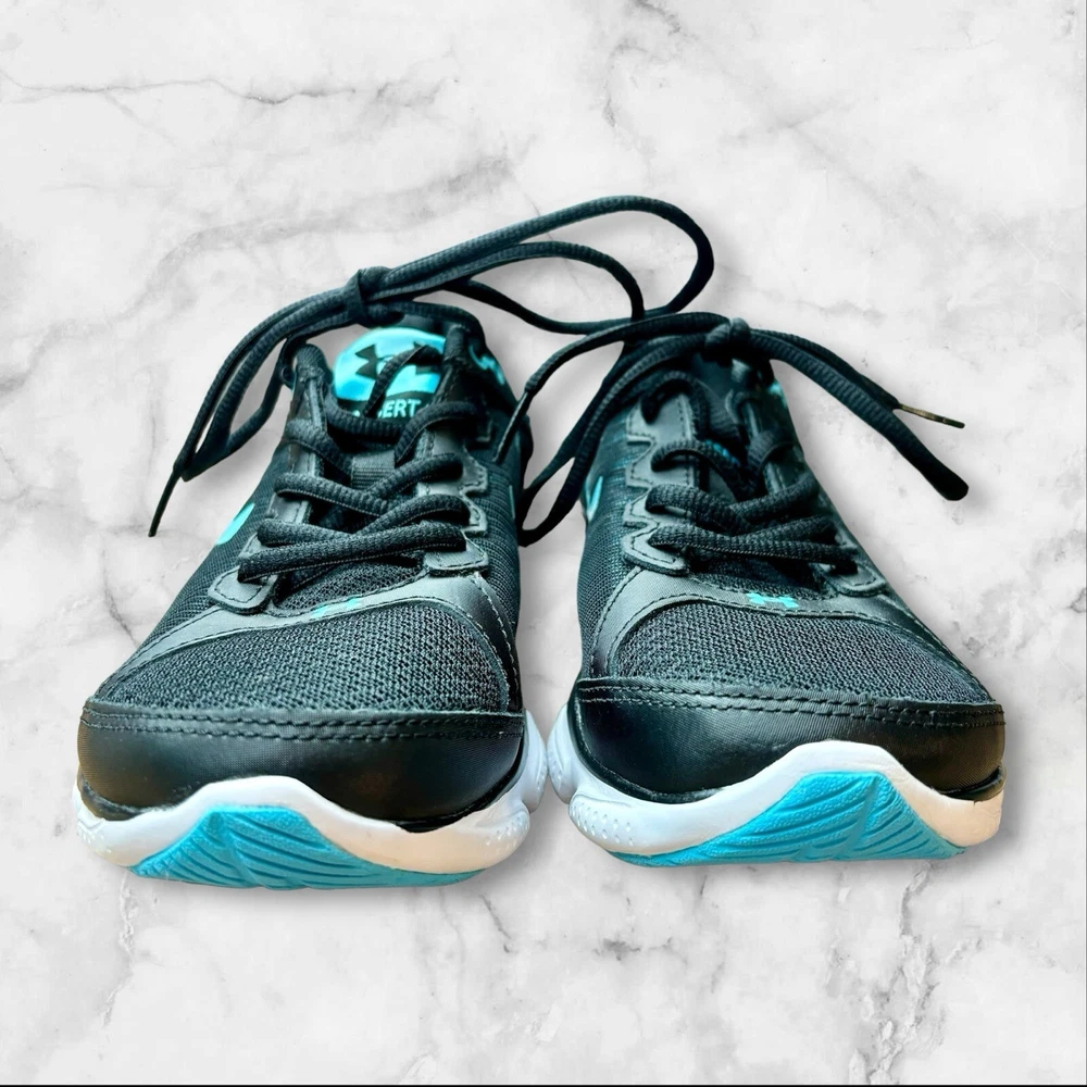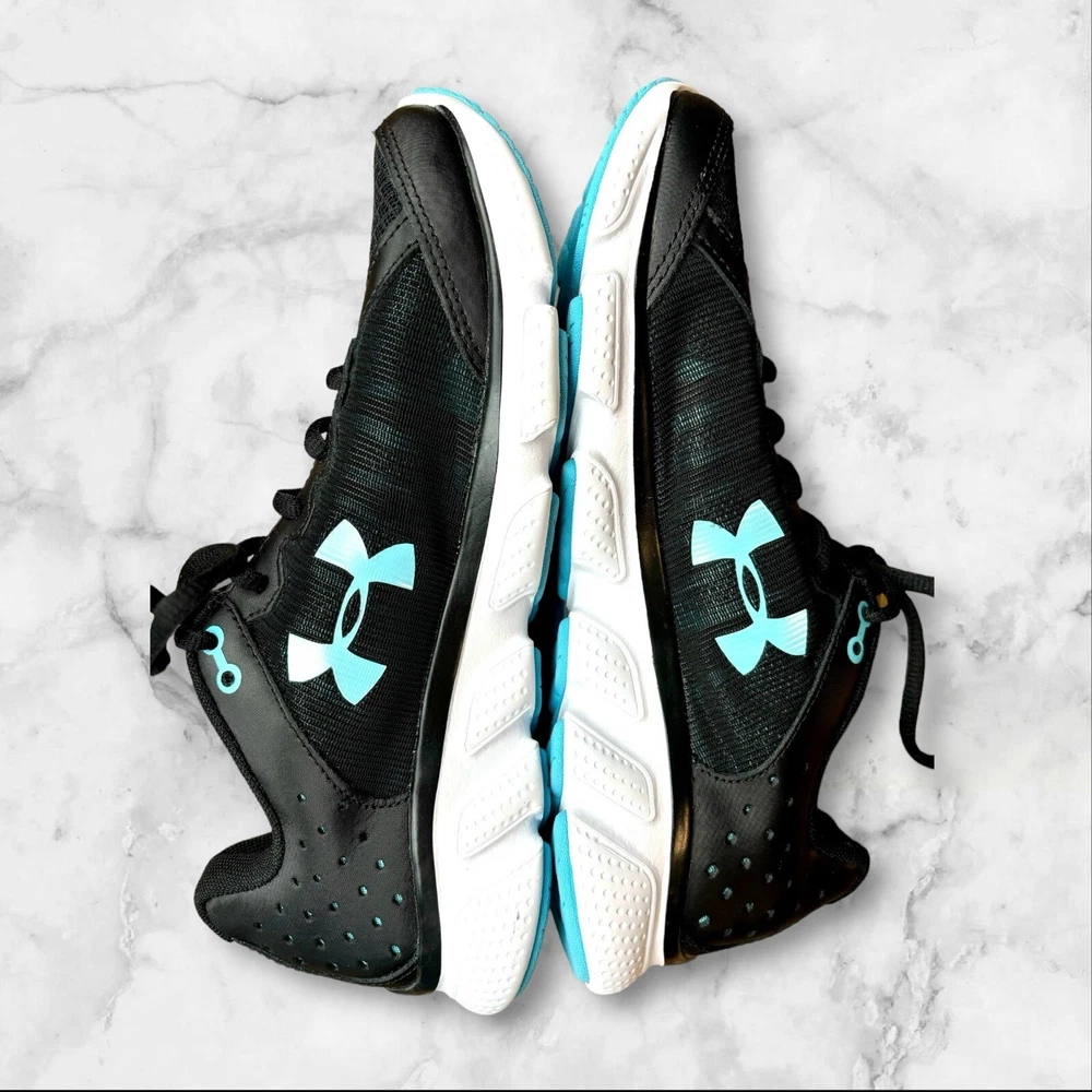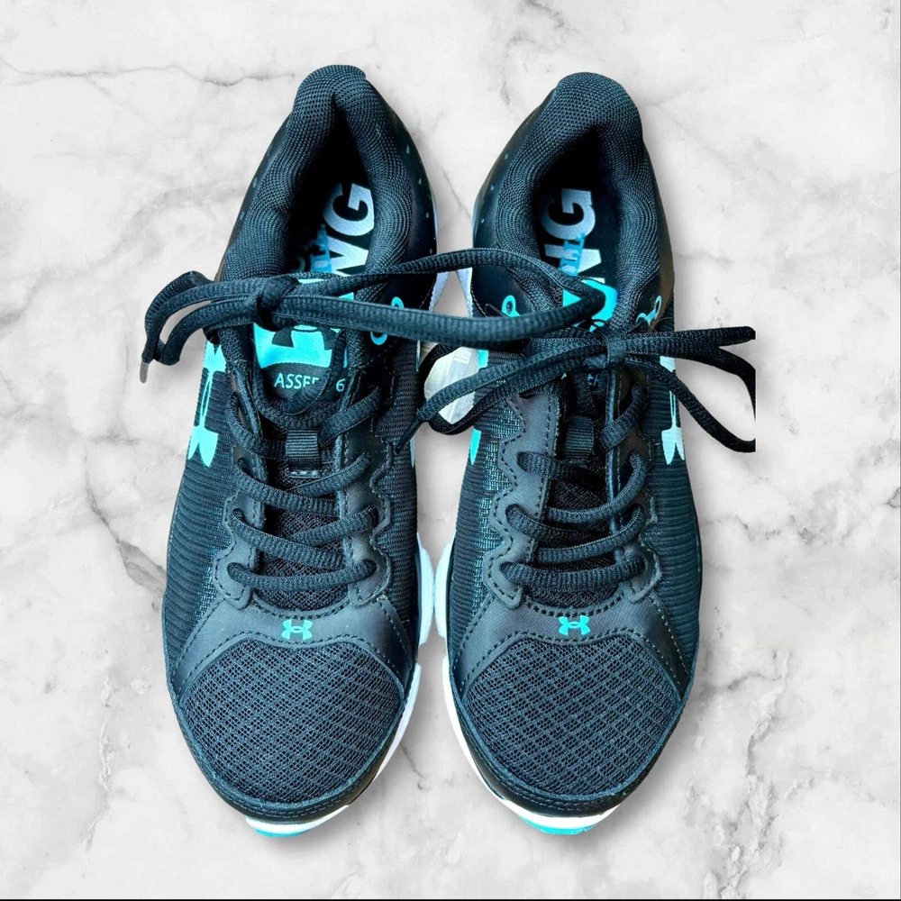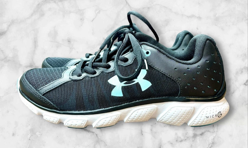 Elevate your workout game with these stylish and comfortable Under Armour Micro G Assert 6 running shoes. Designed with a black and blue color scheme, these shoes are perfect for any outdoor activity, whether it be walking, cross-training, or running. The lace-up closure ensures a secure fit, while the lightweight design provides all-day comfort. Crafted with a synthetic upper material and foam insole material, these shoes are built to last. The rubber outsole provides traction and durability, making them suitable for any surface. With a standard shoe width and low-top shoe shaft style, these shoes are perfect for any woman looking for a comfortable and supportive athletic shoe. EUC