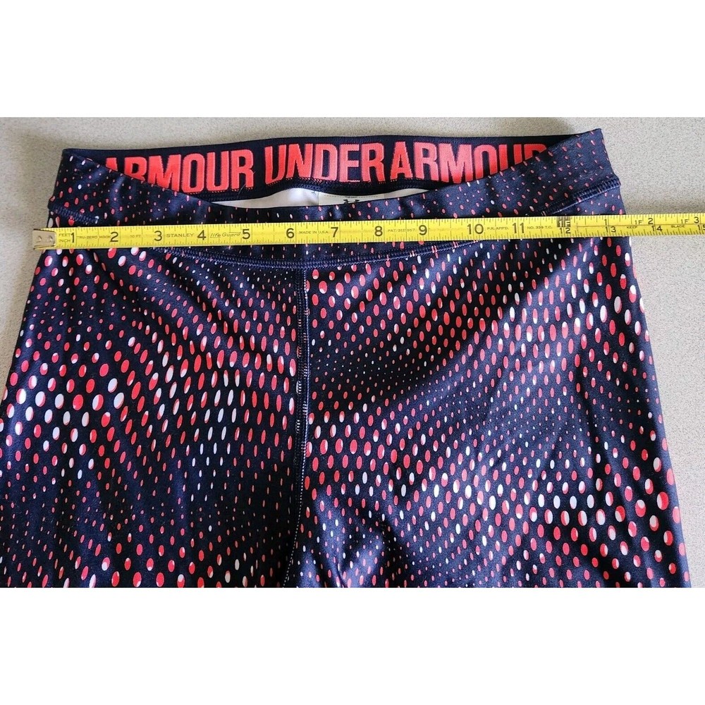 Get ready to elevate your workout wardrobe with these Under Armour compression leggings! Featuring a stylish black and red polka dot design, these leggings are perfect for adding a pop of fun to your activewear collection. The compression fit provides support and enhances performance during any activity. In great condition and ready for a new home, these leggings are a must-have for any fitness enthusiast. Don't miss out – grab them today and experience the perfect blend of fashion and function!