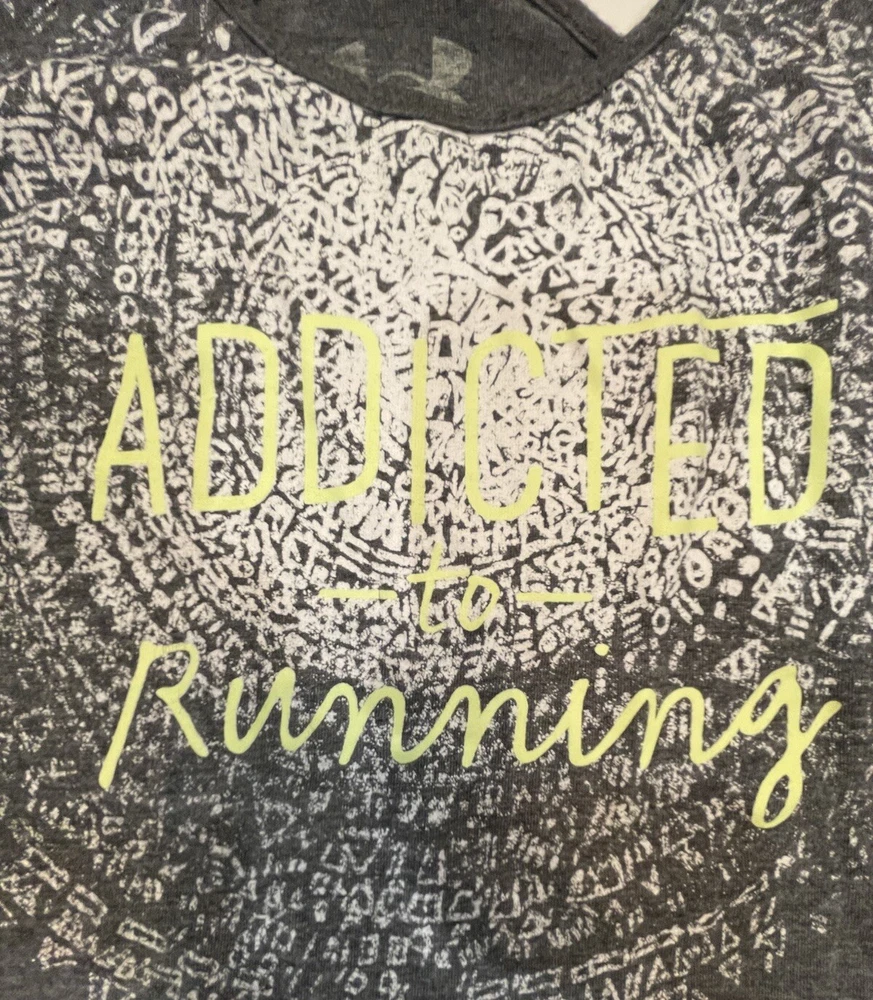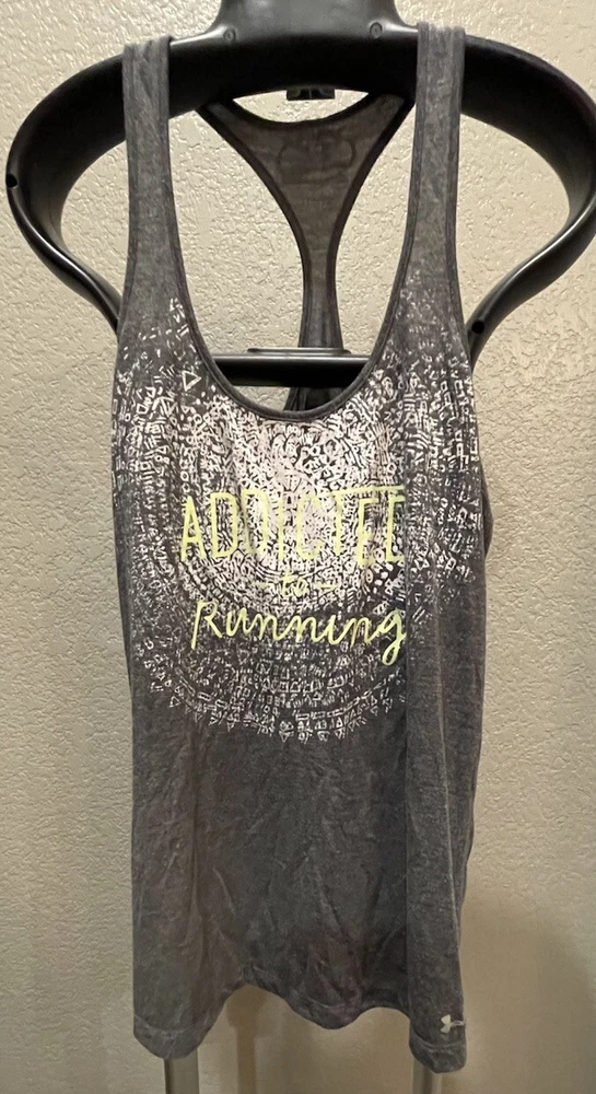 Under Armour Women’s Grey Racerback Tank Top Size “Addicted To Running” No size, but estimated to be a medium.