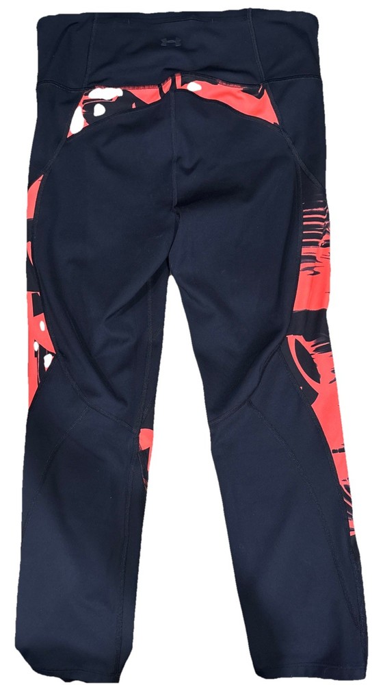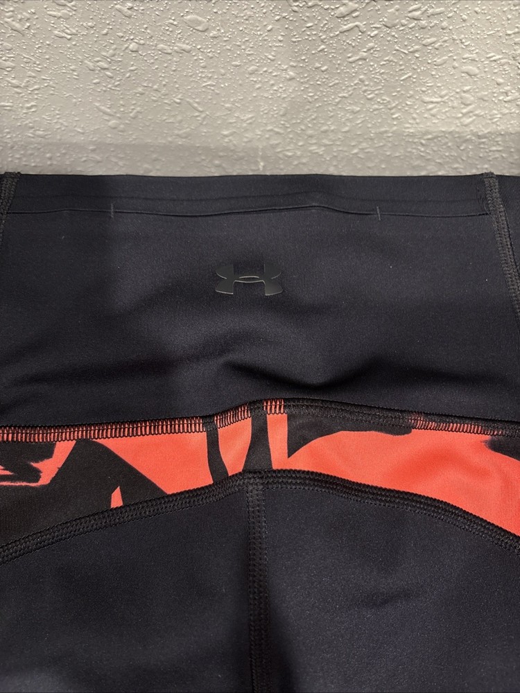 Elevate your workout wardrobe with these black Under Armour MD HeatGear leggings. Designed with compression technology, these leggings offer a comfortable and supportive fit that will help you power through any workout. The knit fabric is made from 77% polyester and 23% elastane, providing both durability and stretch. Ideal for gym & training, walking, weightlifting, cycling, cross training, yoga, pilates, and running & jogging, these leggings have a mid-rise waist and a 22-inch inseam. The Under Armour logo adds a touch of style to these activewear leggings. Machine washable and easy to care for, these leggings are perfect for any season.