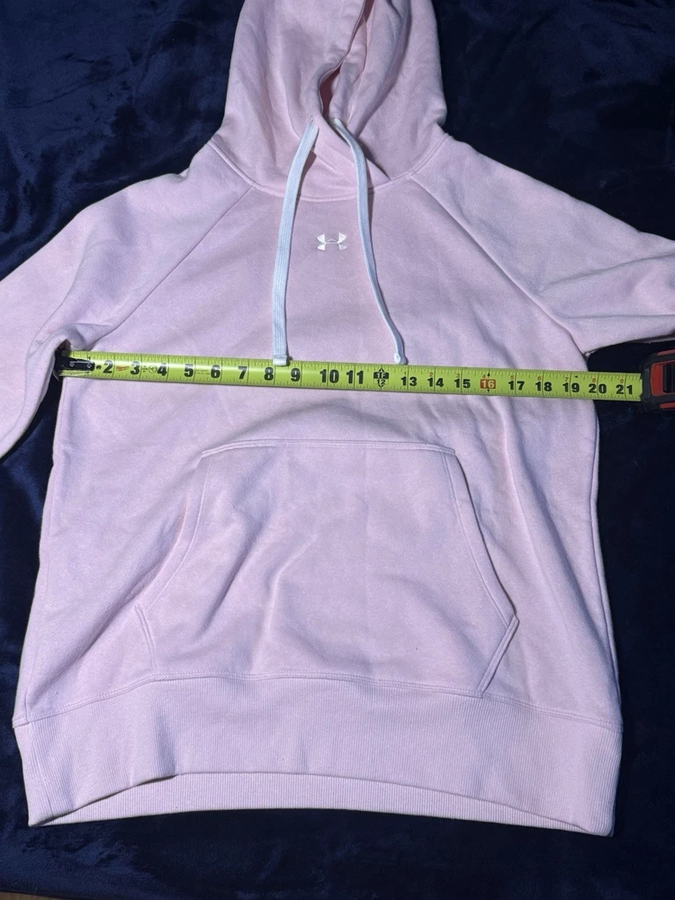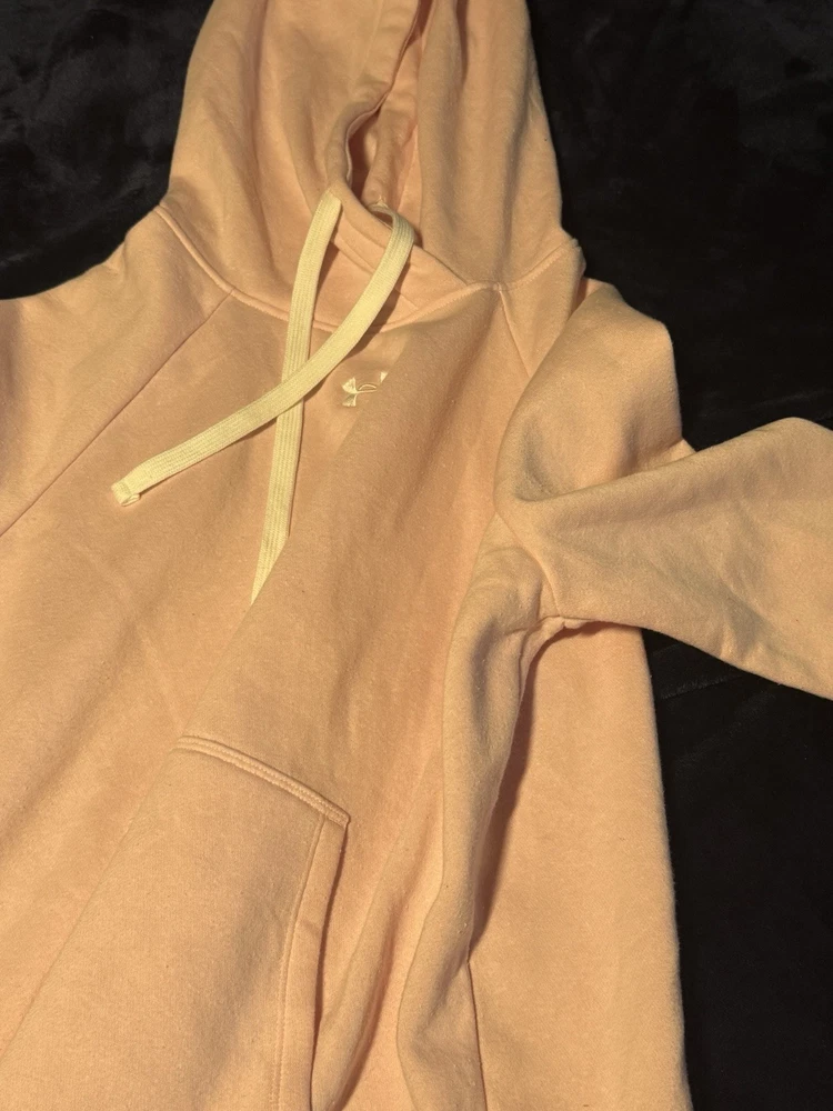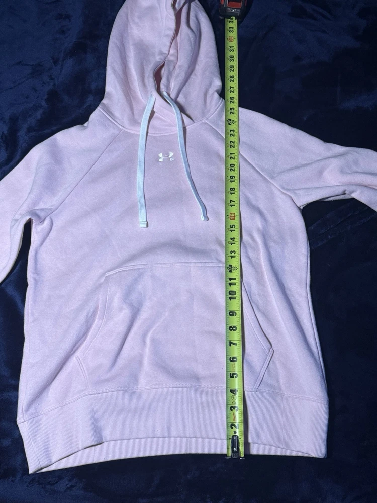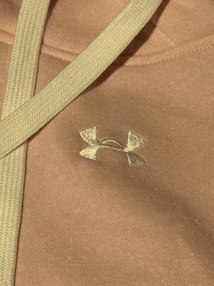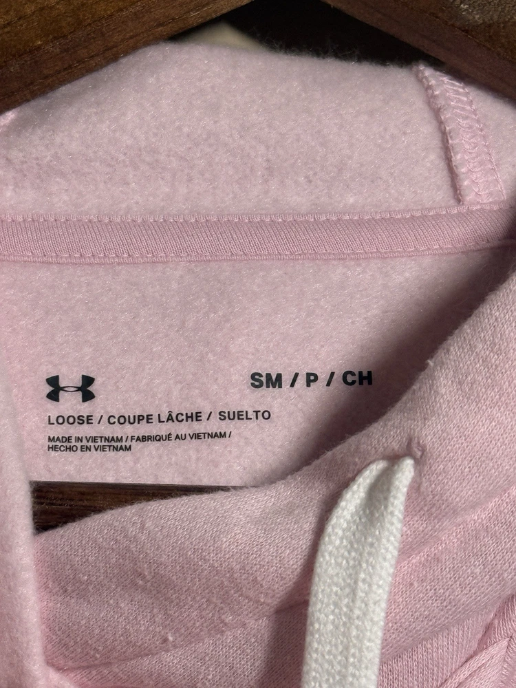 This Under Armour Women’s Light Pink Fleece Lined Hoodie in size Small offers a relaxed fit, making it ideal for a variety of activewear occasions. The hoodie features long sleeves, a drawstring closure, and a pullover style with a hood and logo accents. Made from 100% cotton knit fabric, it is machine washable and includes pockets for added convenience. Perfect for winter, fall, and spring seasons, this hoodie is ideal for activities like tennis, cycling, golf, volleyball, soccer, cross training, running, and more. The light pink color adds a feminine touch to the versatile design. *Please see images for close up* -This hoodie does have some minor lint pilling to it. I did try to use a fabric shaver to shave it down however it doesn’t seem to have worked :( Please message me with any questions!