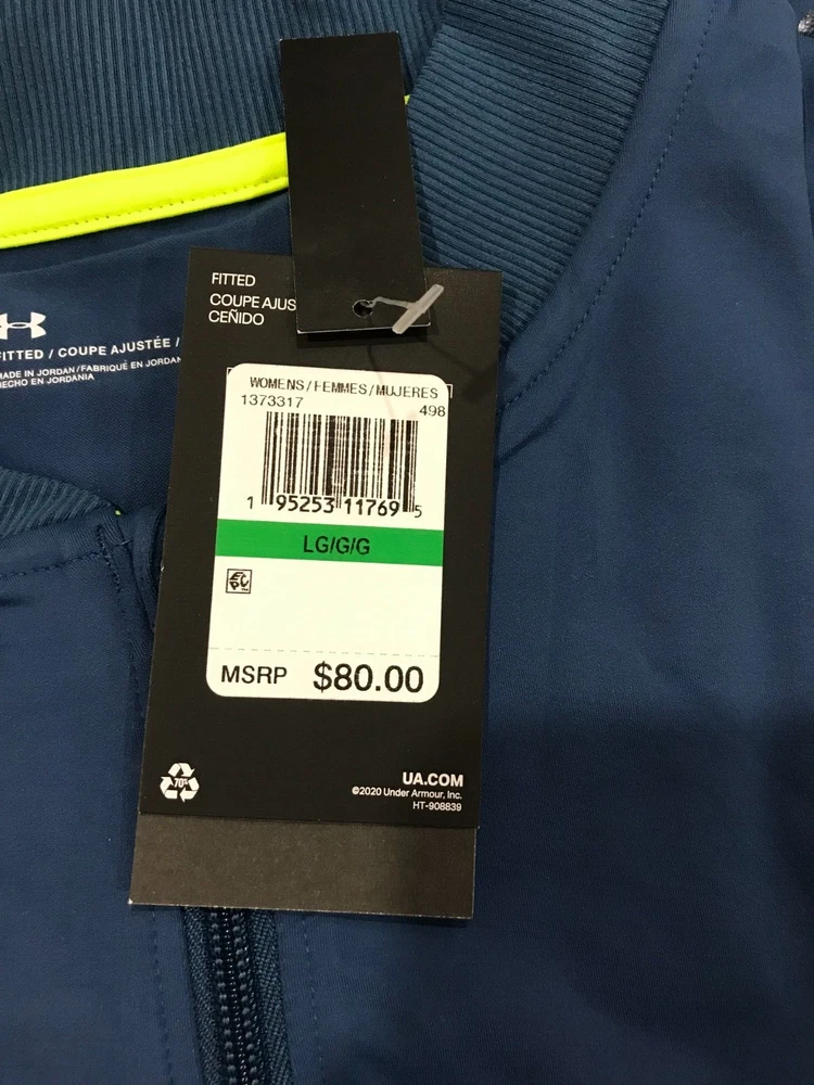 Description: Under Armour Women's (Size L) Royal Blue Long Sleeve Full-Zip Meridian Bomber Jacket. (See pictures) Brand: Under Armour Gender: Women Size: L Color: Royal Blue Pattern : Solid Material: 83 % nylon/17% elastane Condition: New with tags MSRP: $80 Buy It Now Price: $33.99 Shipping: Free Note: Picture Accuracy is about 90%. Slight variance in color may result, due to lighting and camera default settings.