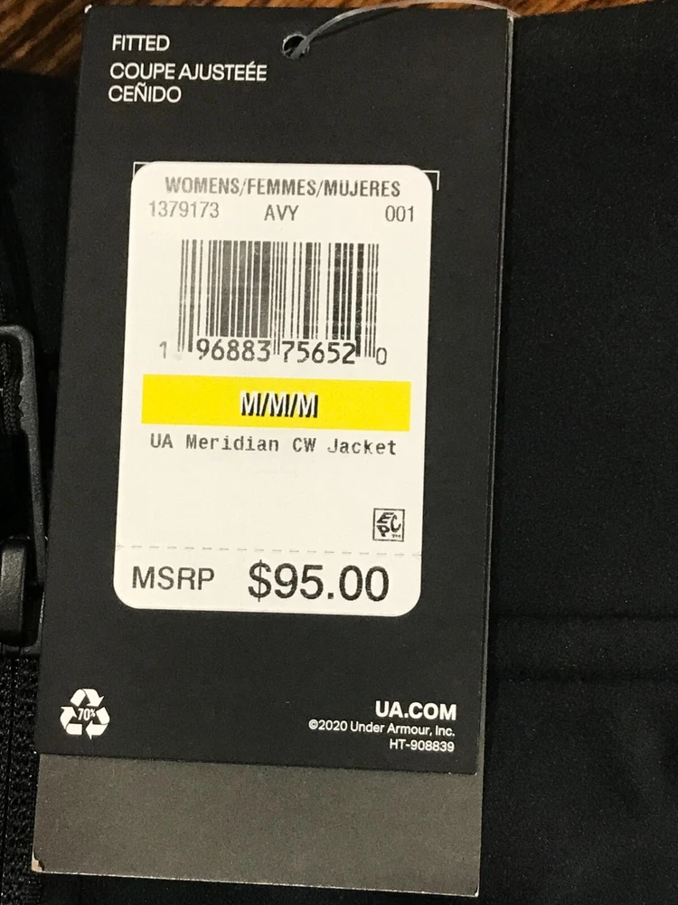 Description: Under Armour Women's (Size M) Black Long Sleeve Full-Zip Meridian Cw Jacket. (See pictures) Brand: Under Armour Gender: Women Size: M Color: Black Pattern : Solid Material: 90 % polyester/10% elastane Condition: New with tags MSRP: $95 Buy It Now Price: $36.99 Shipping: Free Note: Picture Accuracy is about 90%. Slight variance in color may result, due to lighting and camera default settings.